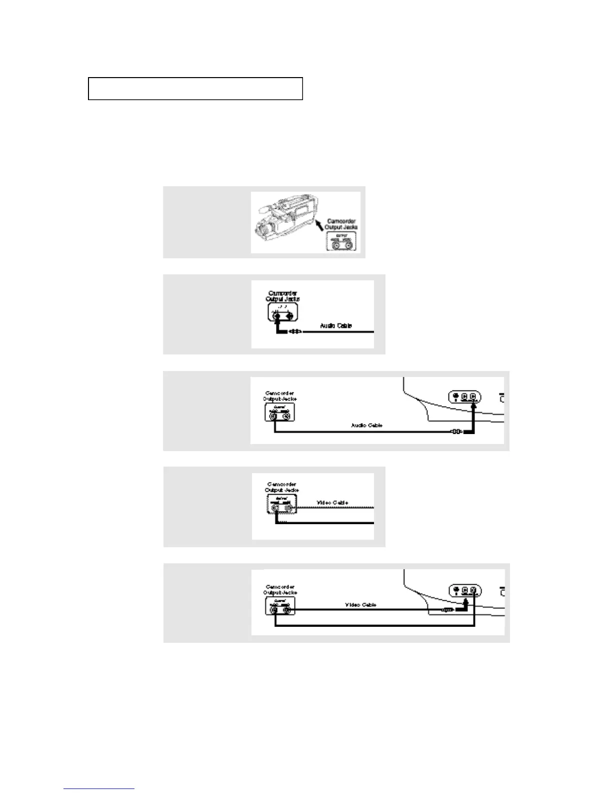 The audio and video cables mentioned in the steps below are usually included with a camcorder. You can also purchase them