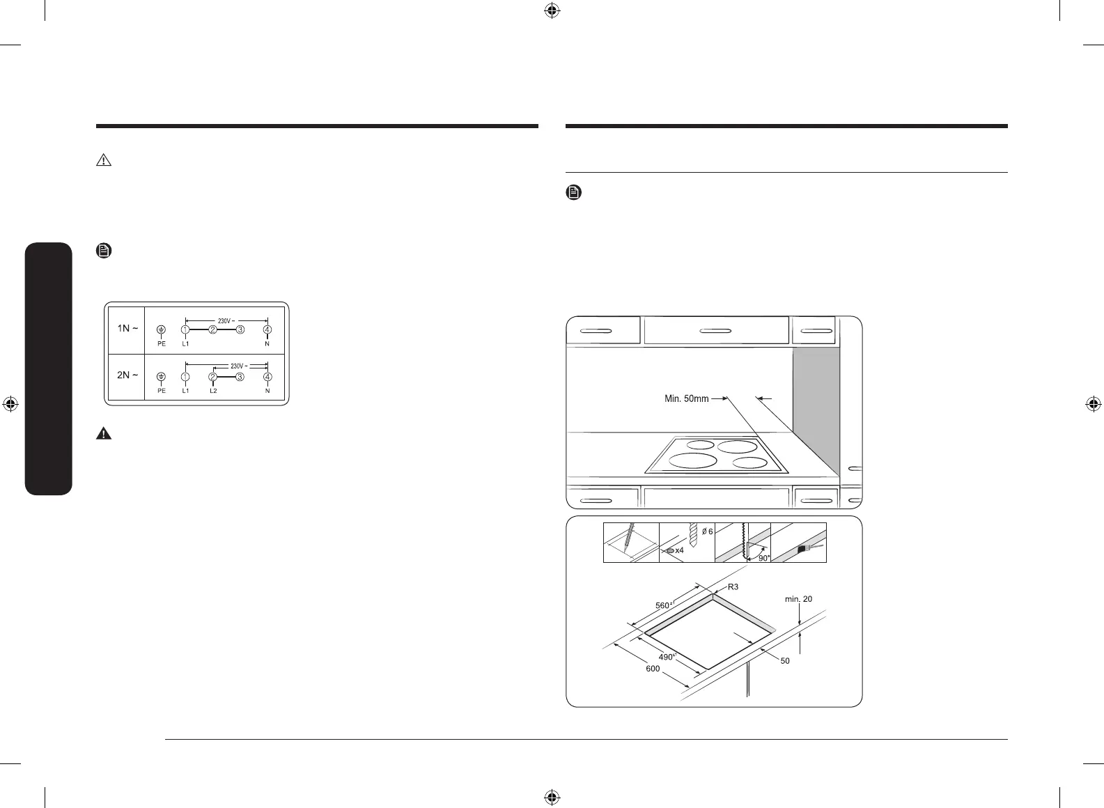 • Pay special attention to the minimum space and clearance requirements.