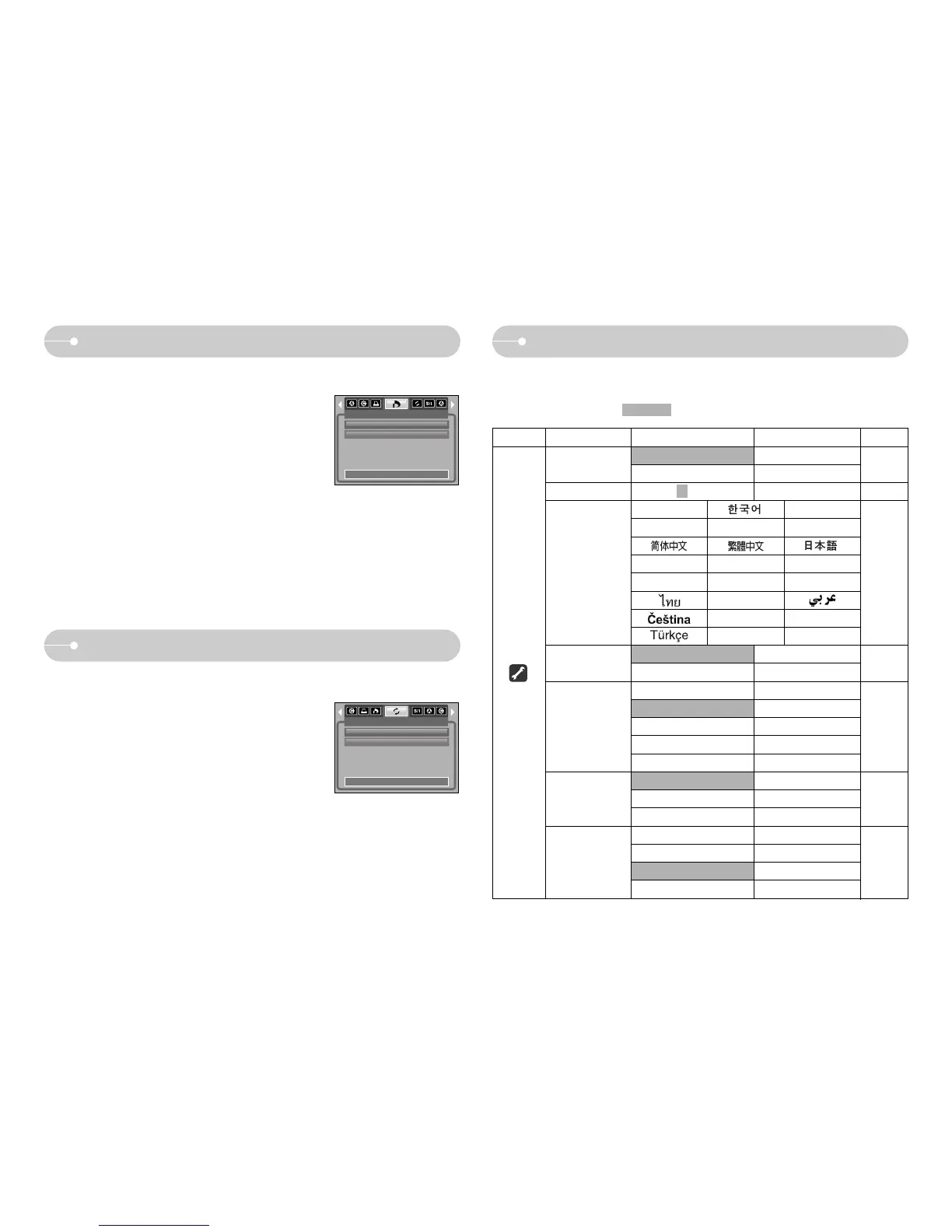 The items indicated by are default settings.