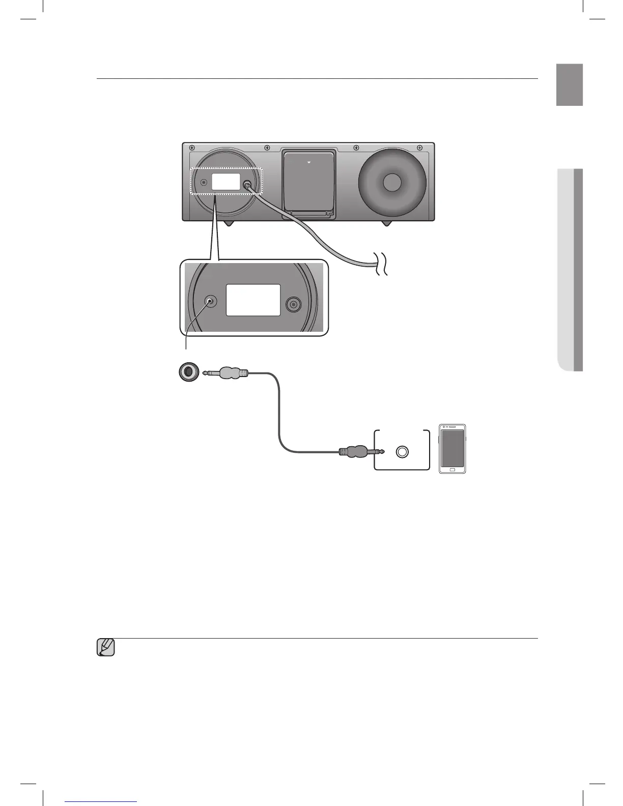 Connect AUX IN (Audio) on the back of the unit to the earphone jack of the external device or audio device.