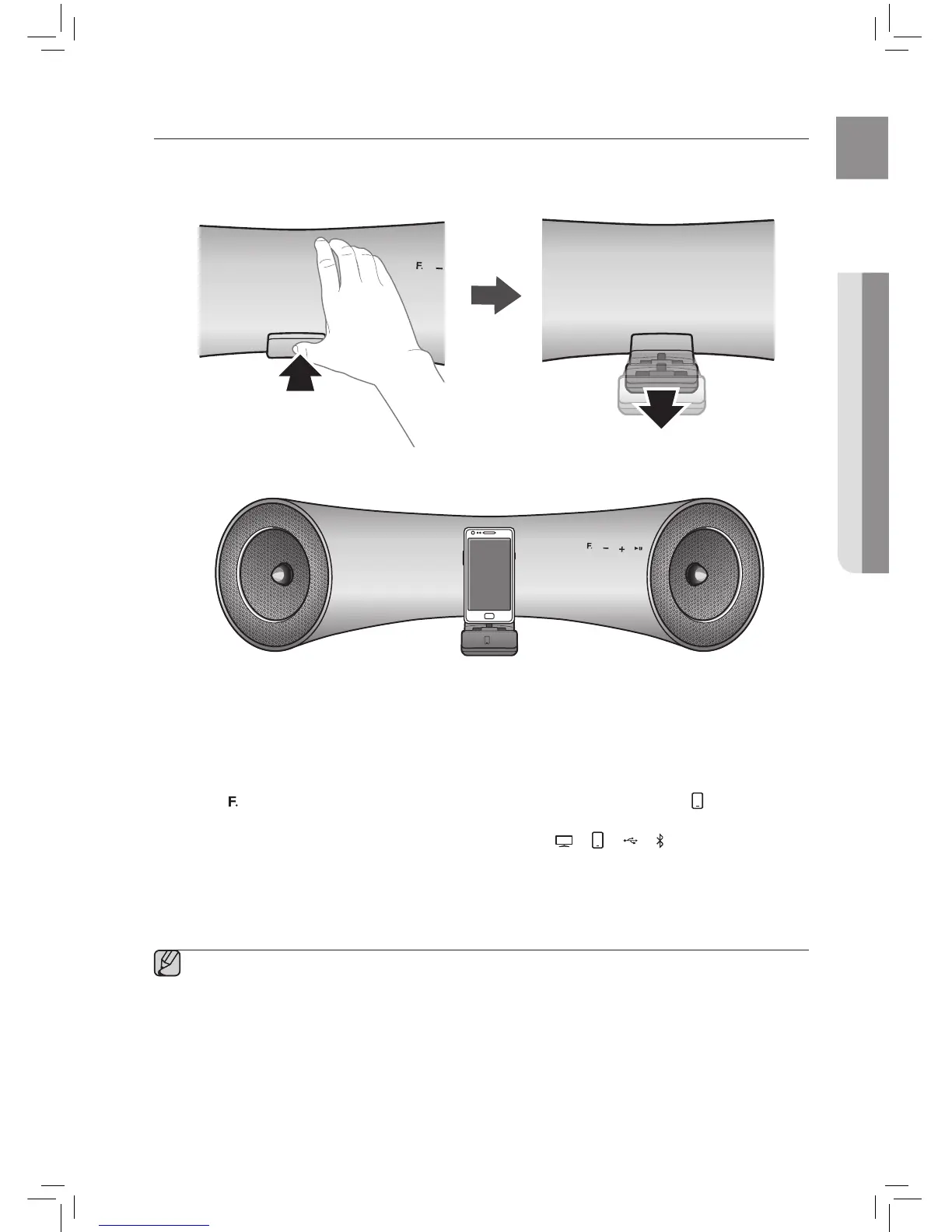 ▪ Connect your Samsung Galaxy or Apple device to the Dual Dock before starting Docking mode.
