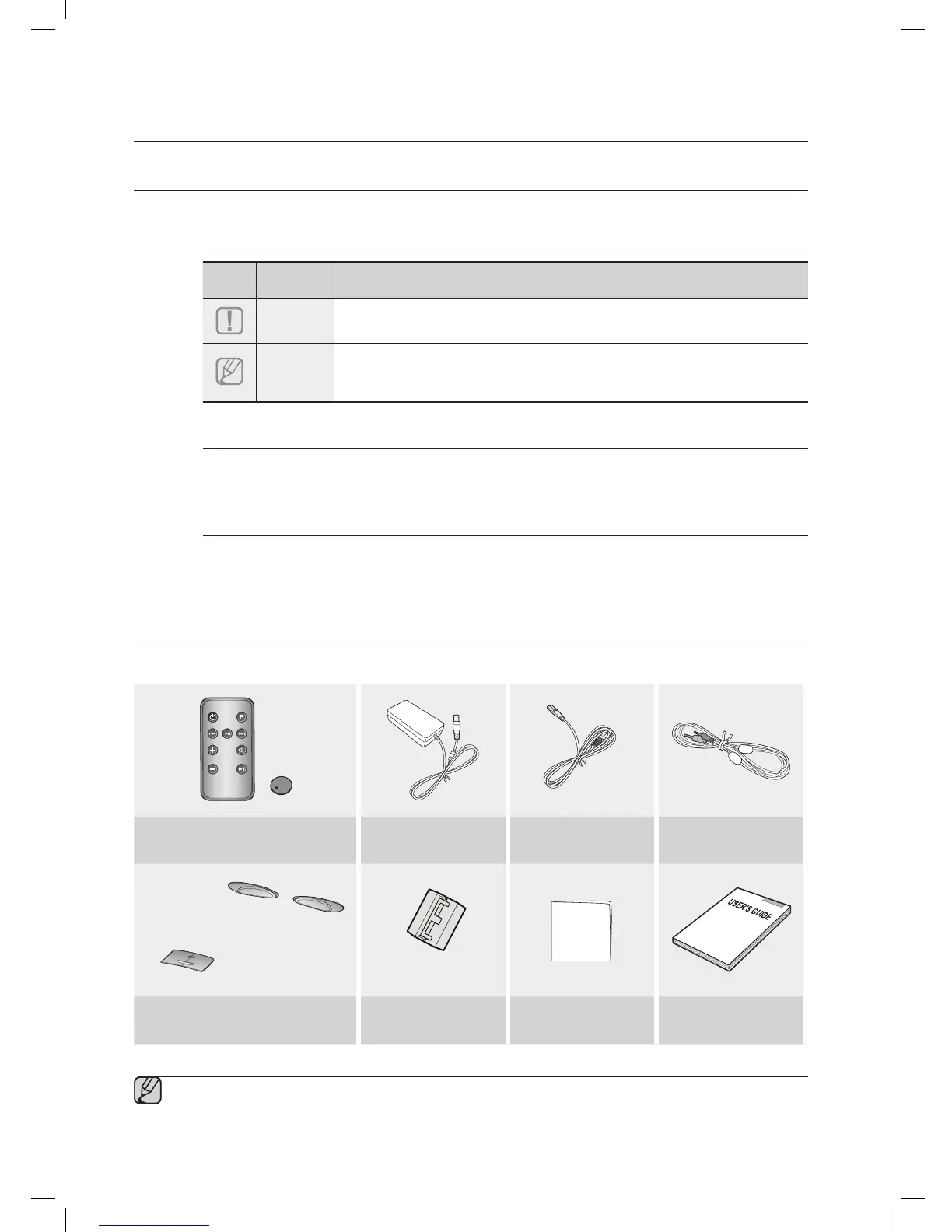 ▪ The appearance of the accessories may differ slightly from the illustrations above.
