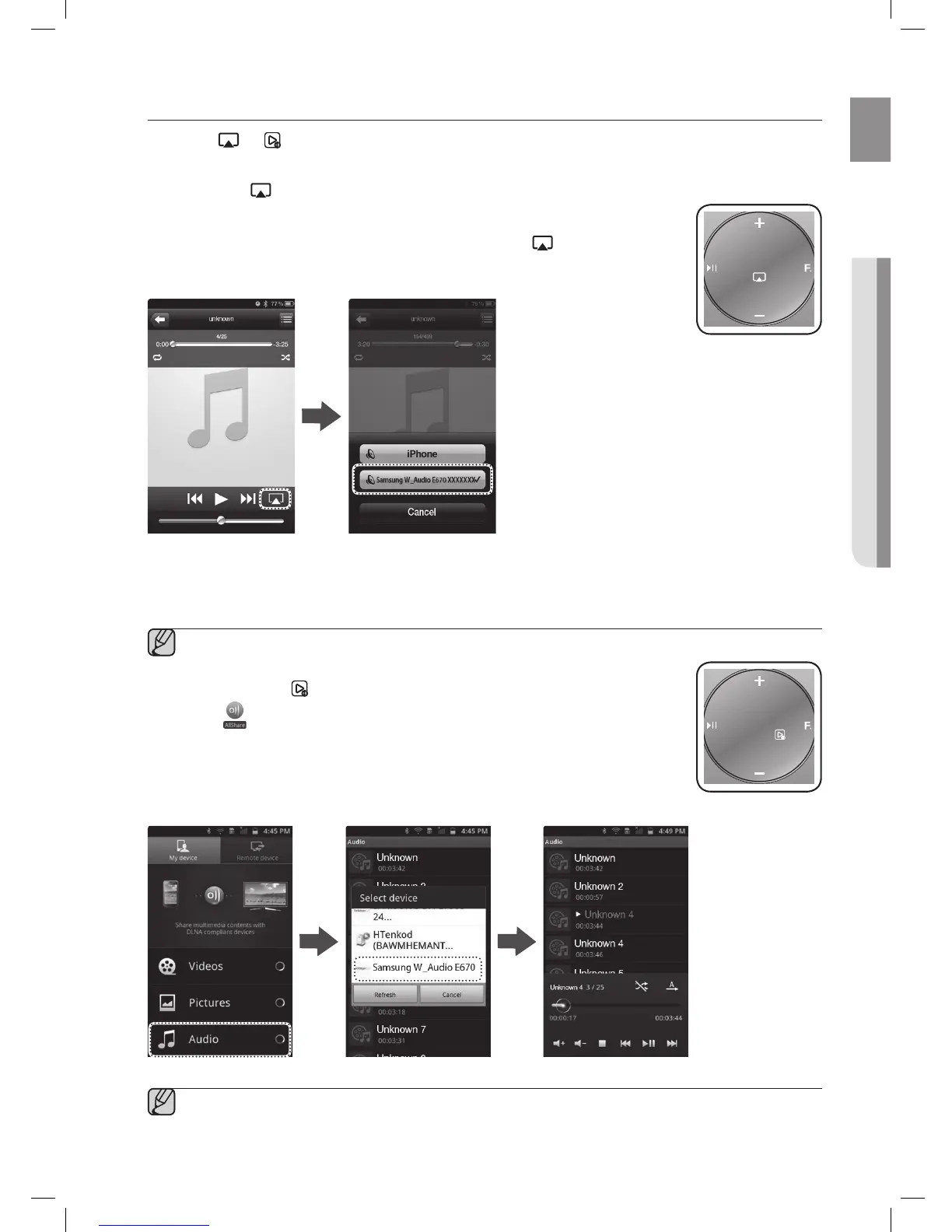 To use the or function, the Wireless Audio with Dock and the device which you are trying to