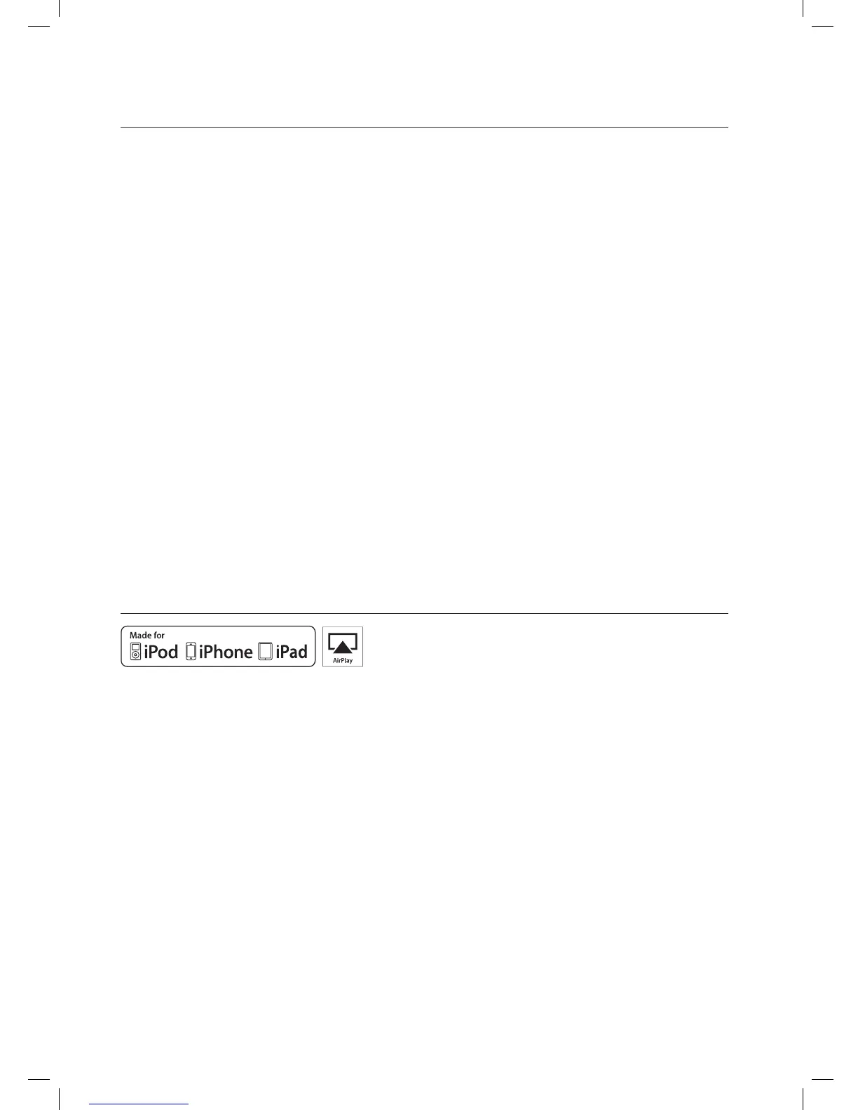 AirPlay, AirPlay logo, iPhone, iPod, iPod classic, iPod nano, iPod shuffle, and iPod touch are trademarks of Apple