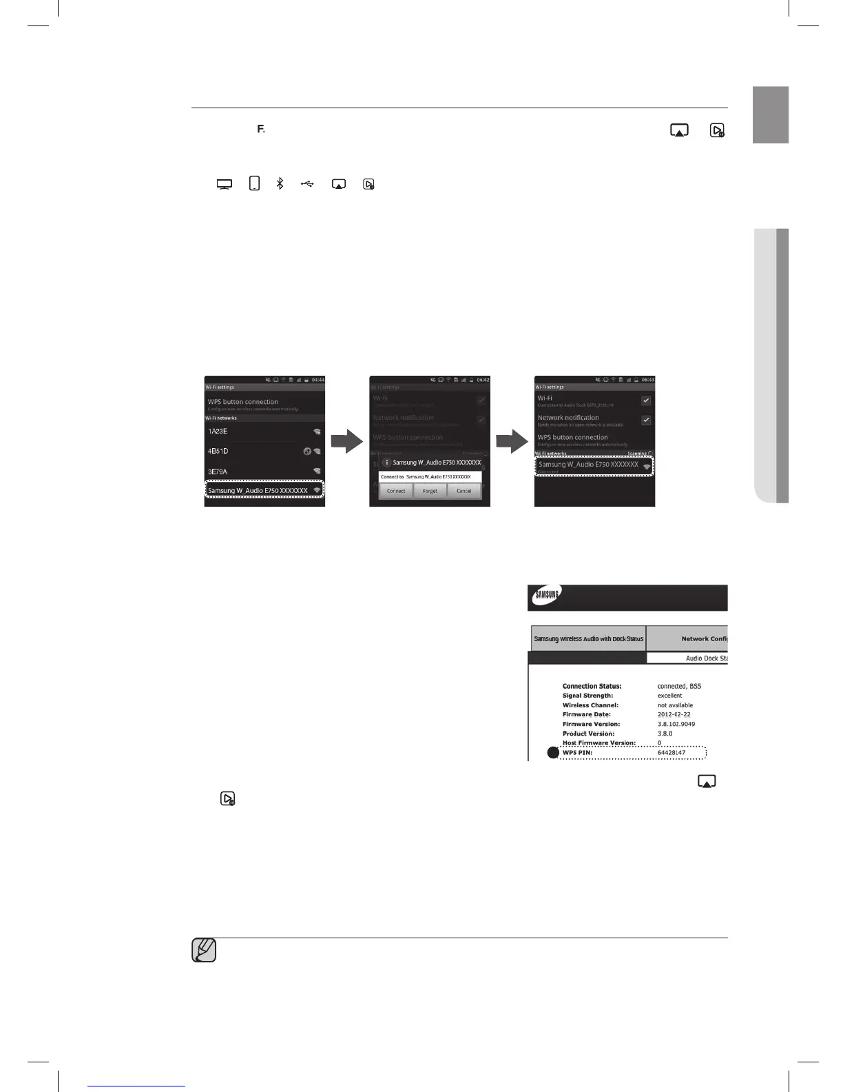 To connect the Wireless Audio with Dock using a WPS PIN