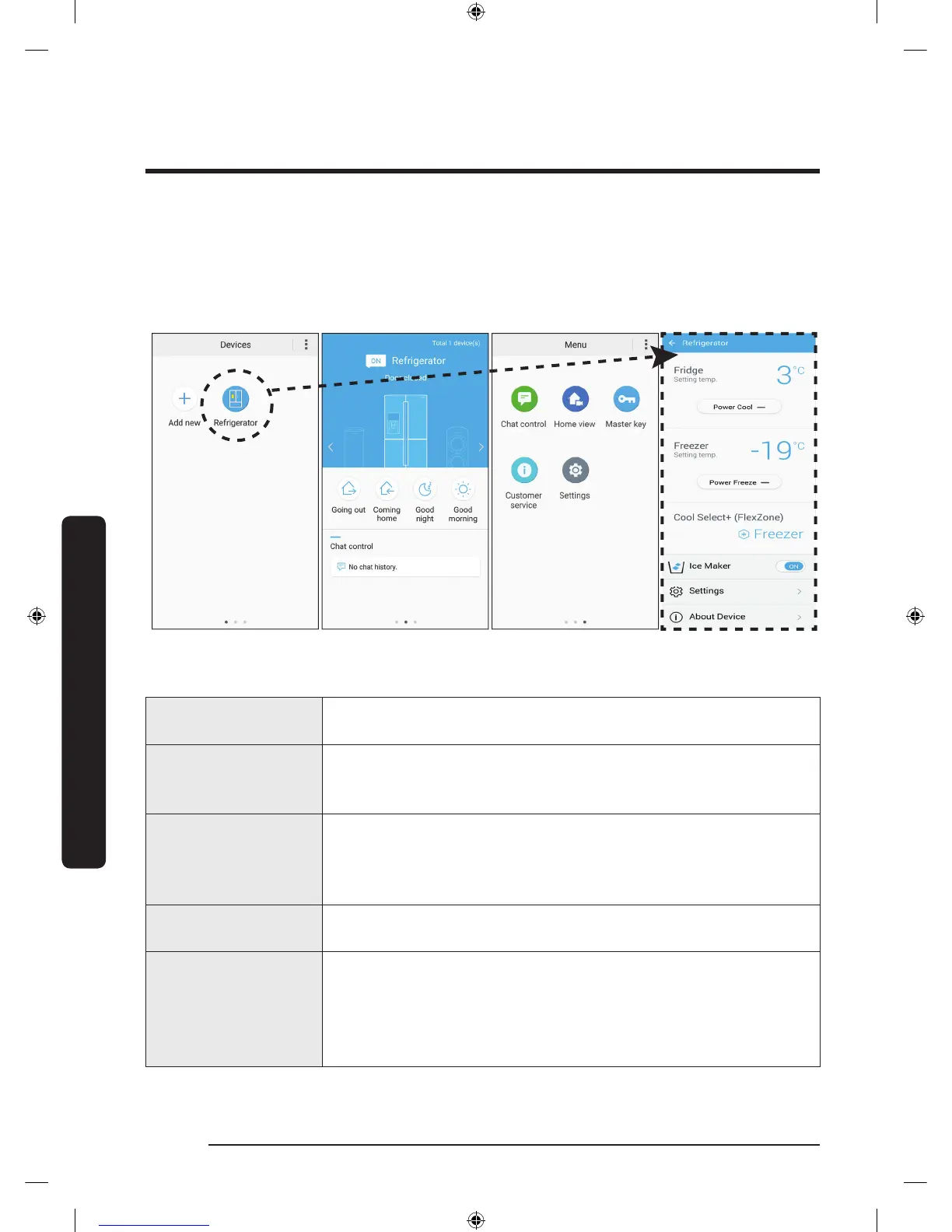 • Tap Refrigerator to open the settings page of the refrigerator.