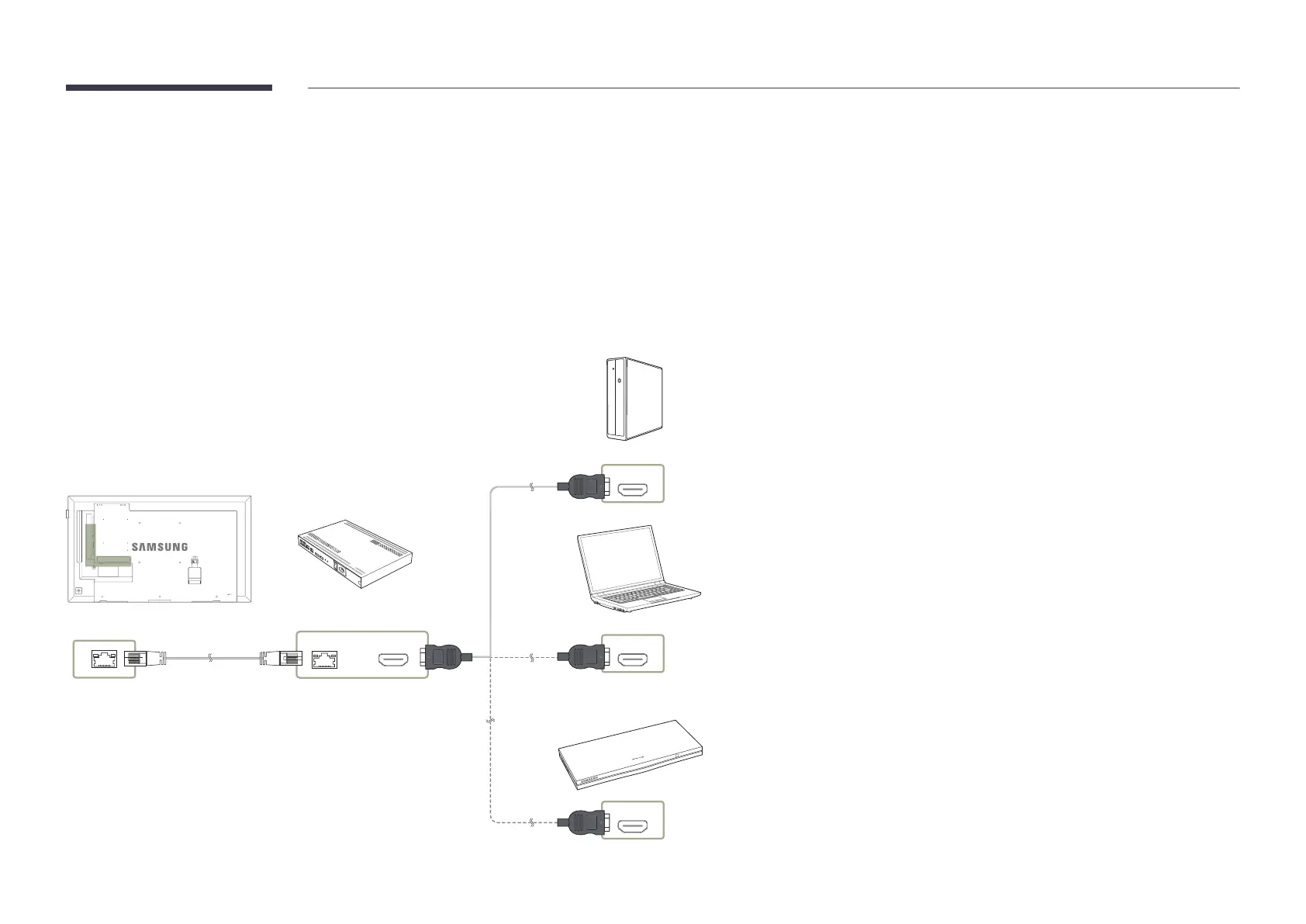 Data transmission is not available if HDBase-T (Rx) is connected to HDBase-T (Tx) through a hub.