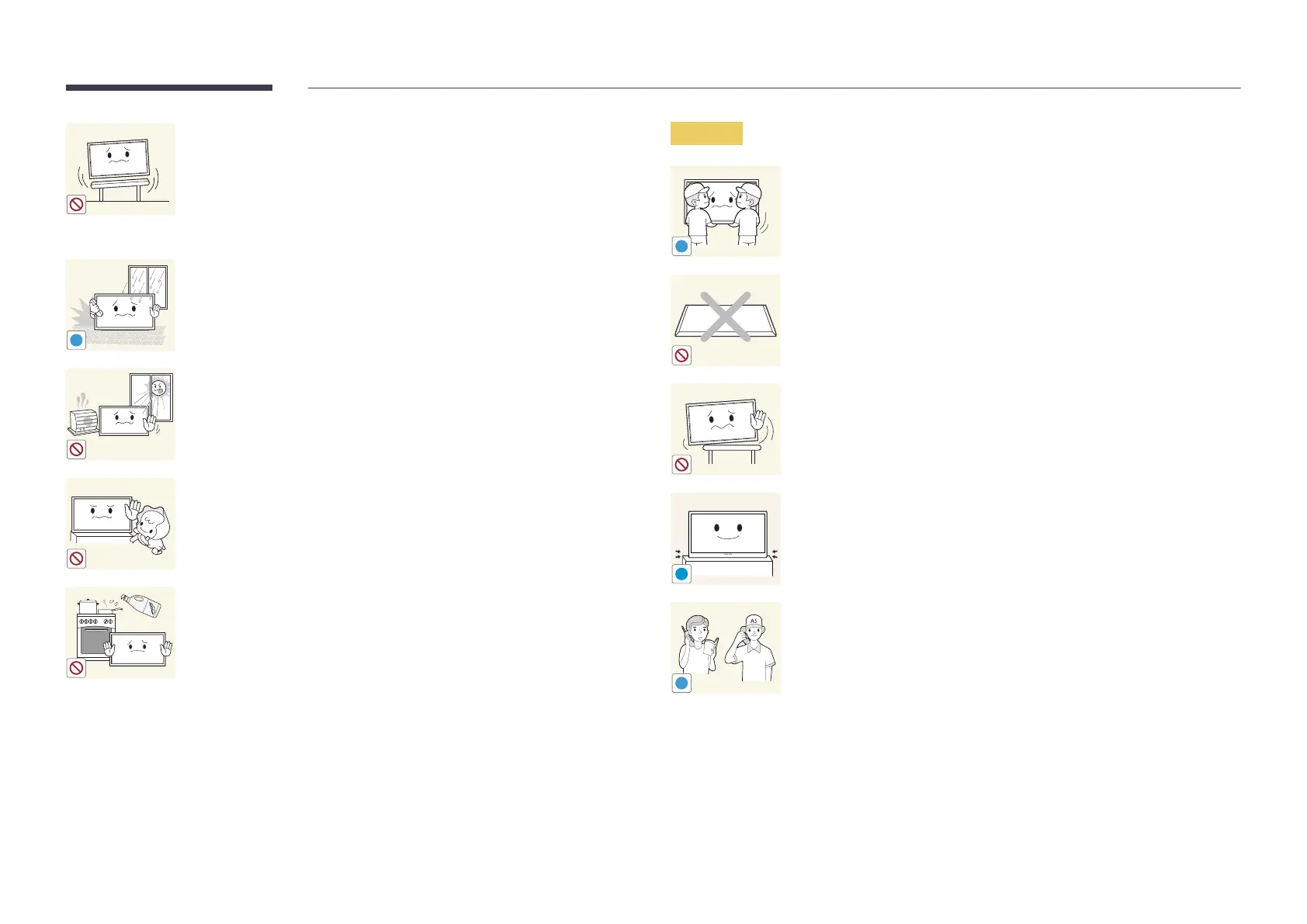 • Install the product only on cabinets or shelves of the right size.