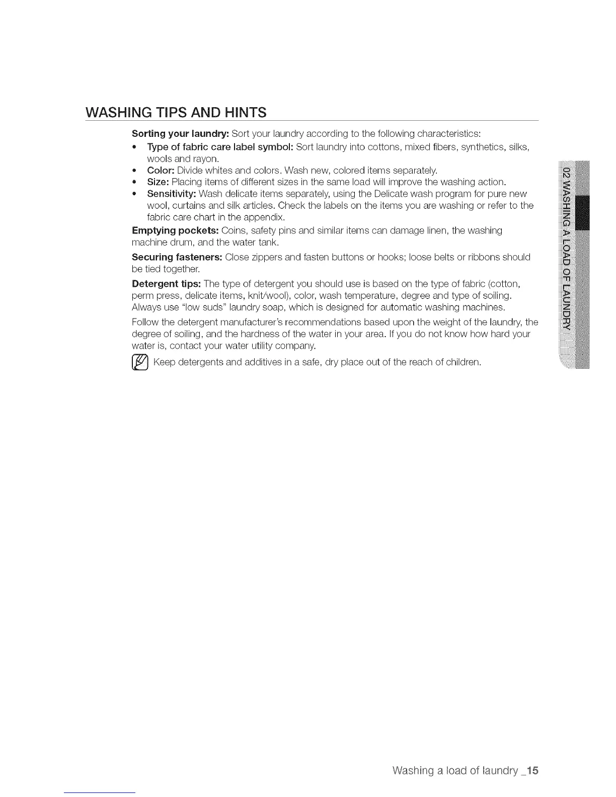 • Size: Placing items of different sizes in the same load will improve the washing action.