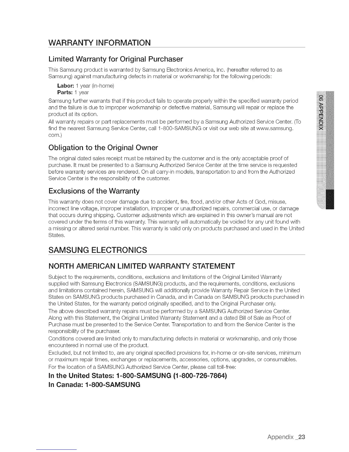 This Samsung product is warranted by Samsung Electronics America, Inc. (hereafter referred to as