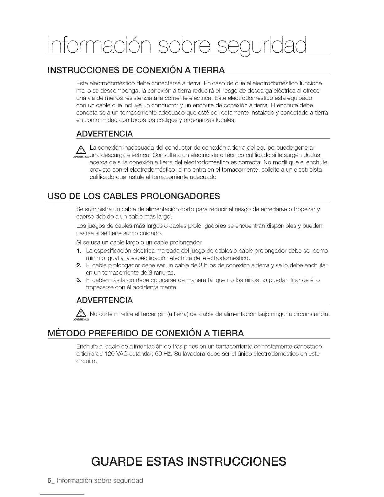 Z_ No corte ni retire el tercer pin (a tierra) del cable de alimentaci0n bajo ninguna circunstancia.