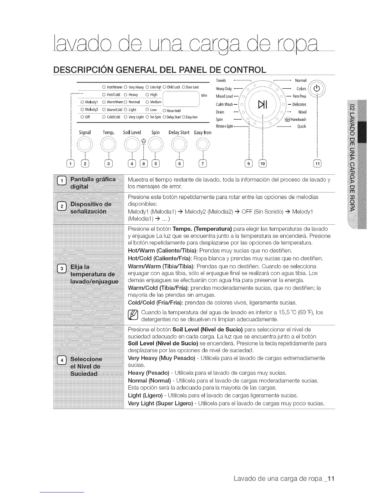 Soil Level (Nivel de Sucio) se encenderb,. Presione la tecla repetidamente para