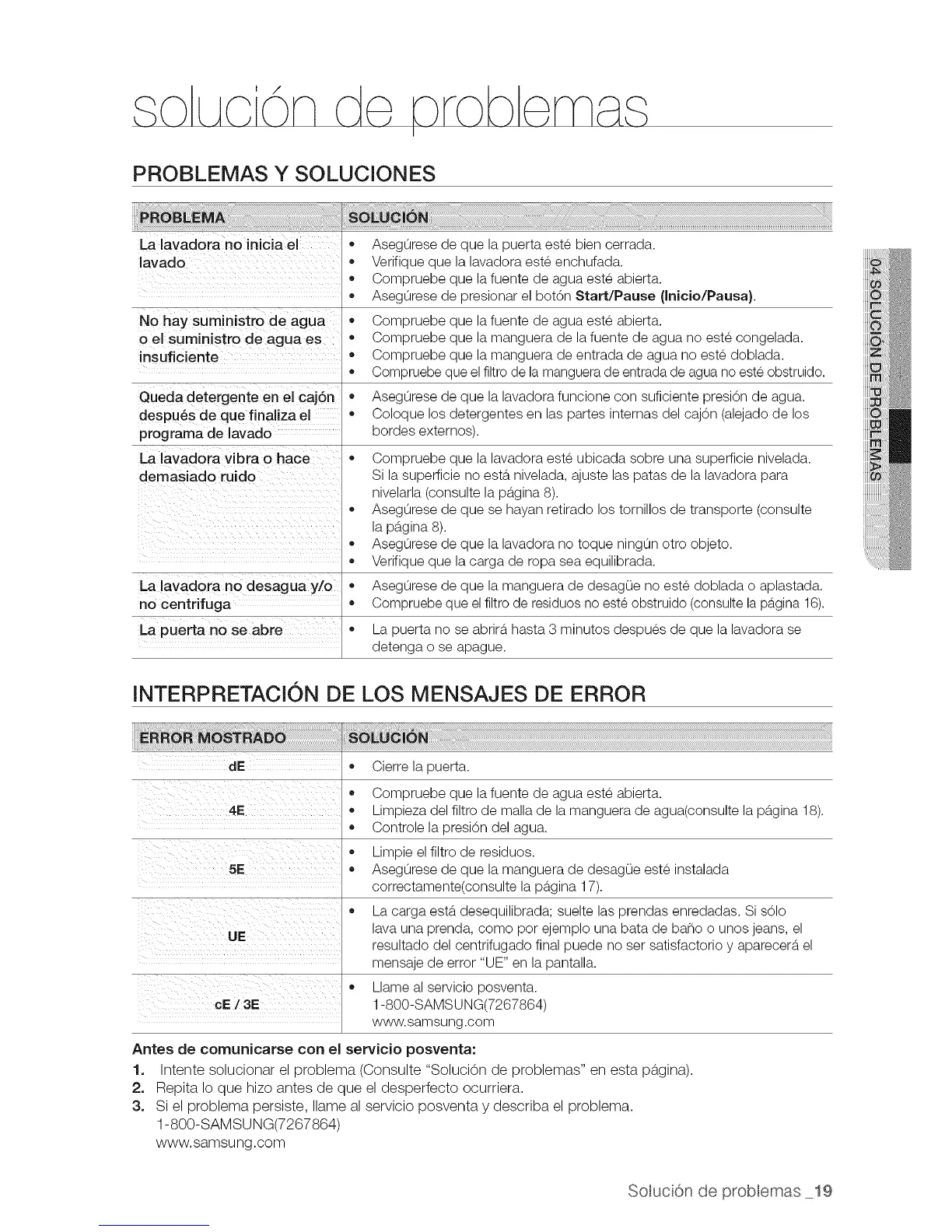 Antes de comunicarse con eJ servicio posventa: