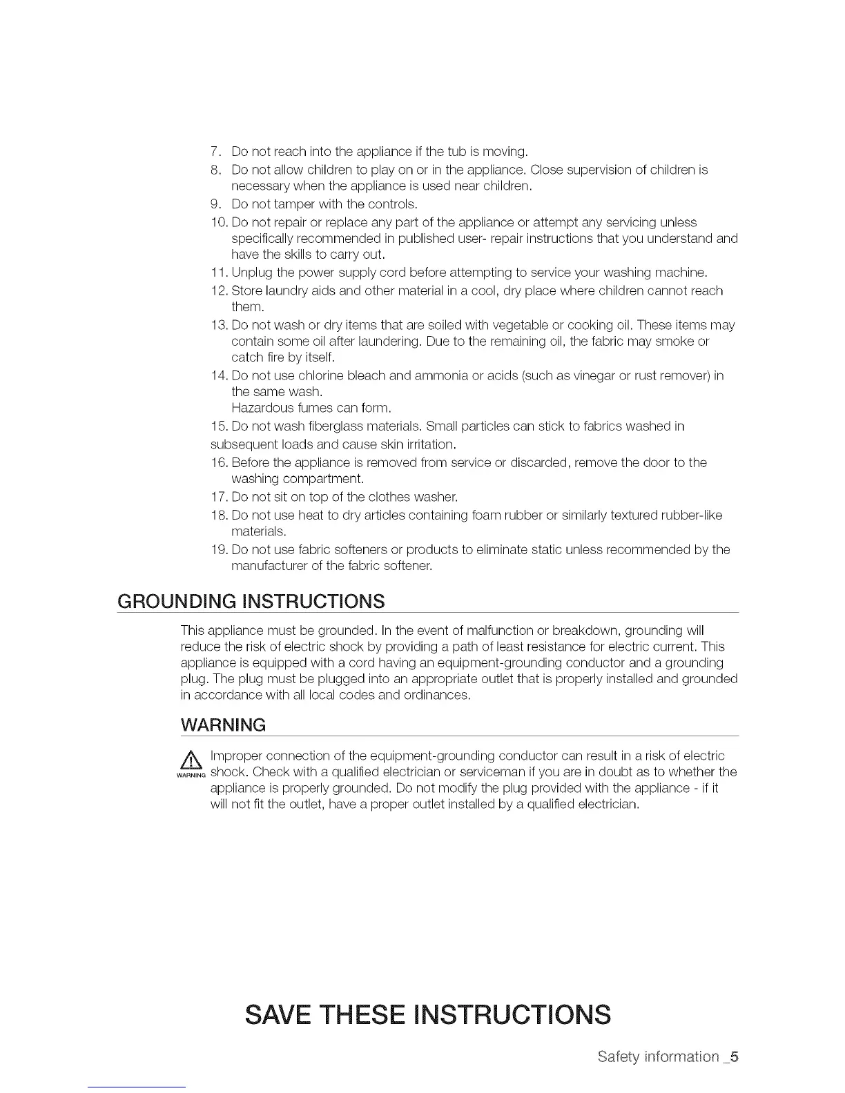 17. Do not sit on top of the clothes washer.
