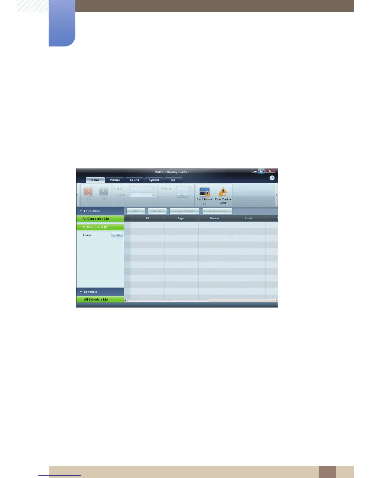LFDs detected in a connection are displayed in the Device list, where the user can make groups and