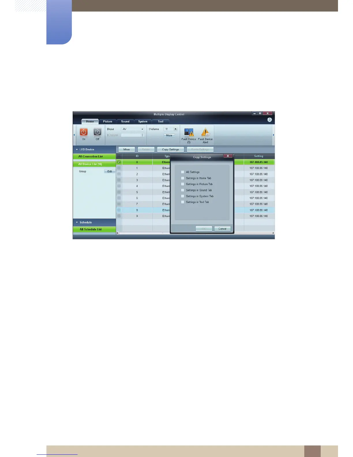 Using the Cloning feature, you can copy the setting of one LFD and apply it to multiple selected LFDs.