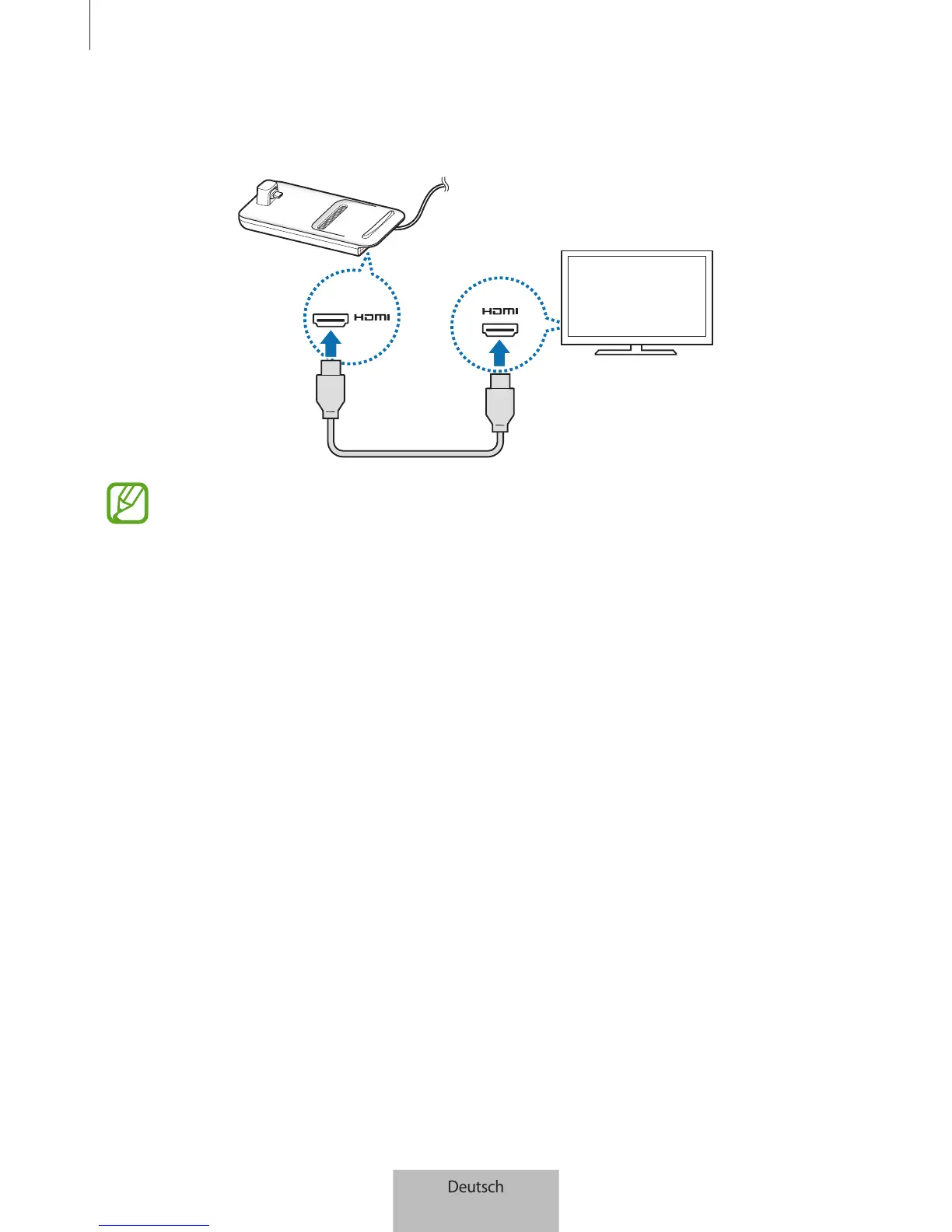 verbinden Sie das andere Ende des Kabels mit dem HDMI-Anschluss am Fernseher oder Monitor.