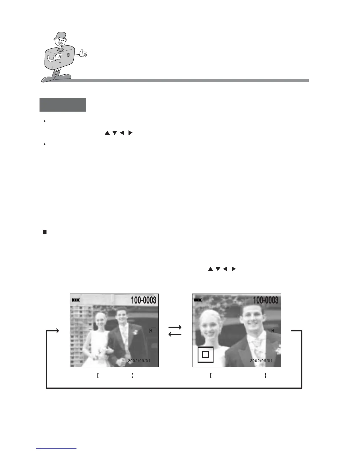 - Normal display : Whenever you press the OK button, a still image will be enlarged to a 2X scale