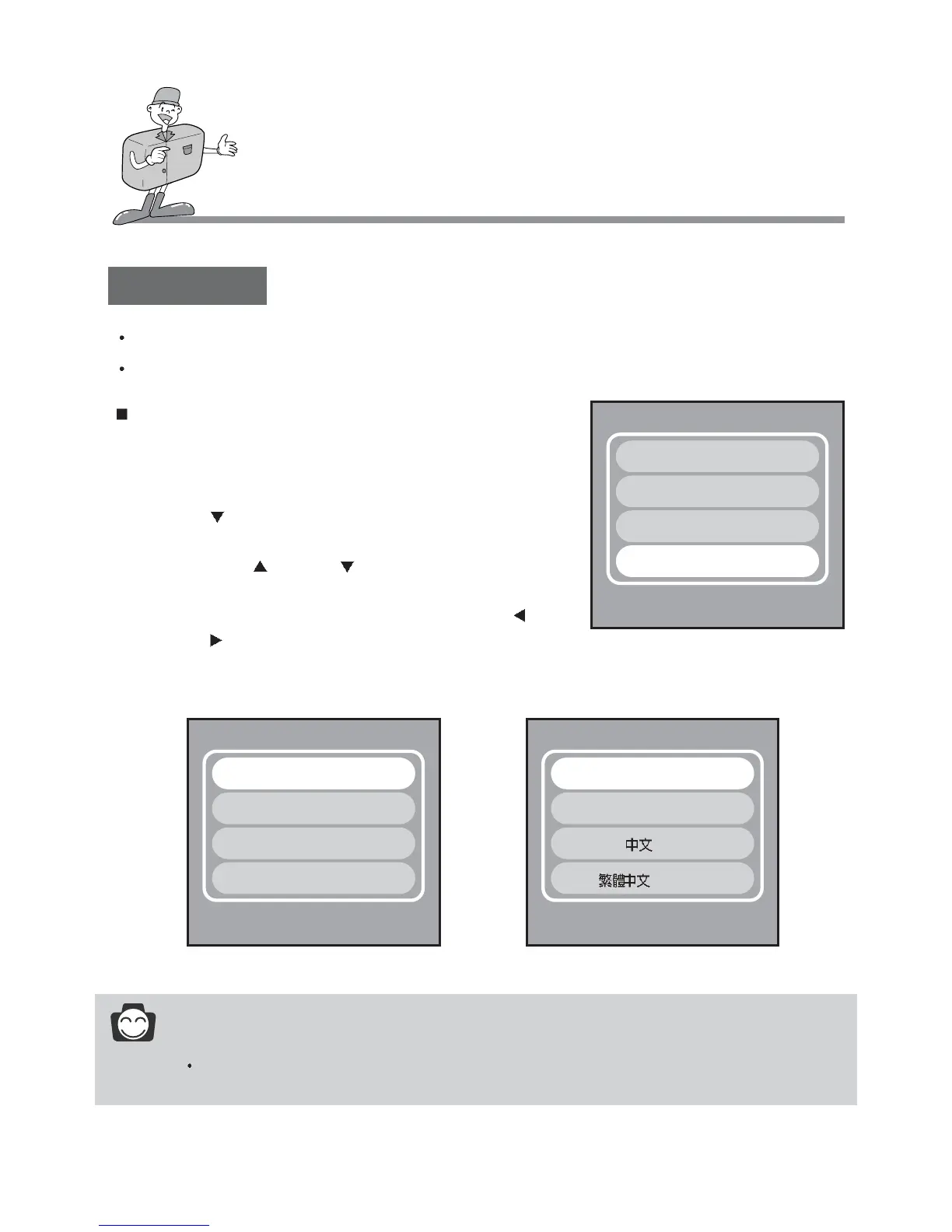 You can select English/ Korean/ German/ French/ Spanish/ Italian/ Taiwanese/ Chinese.