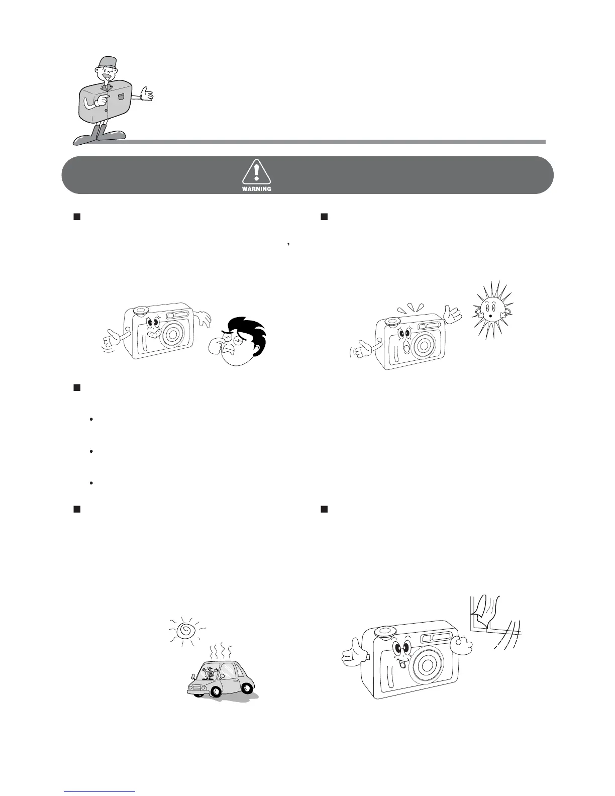 up and distort the camera body or cause a fire.