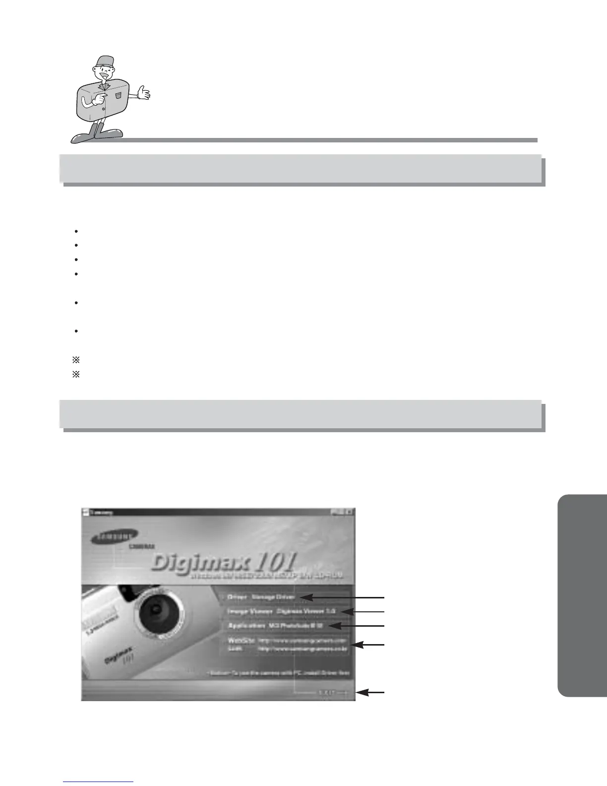 After inserting the CD-ROM provided with this camera into the CD-ROM drive, the following window is
