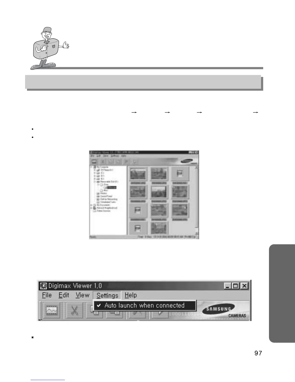 To open Digimax Viewer, click the [ Start Programs Samsung Digimax Viewer 1.0