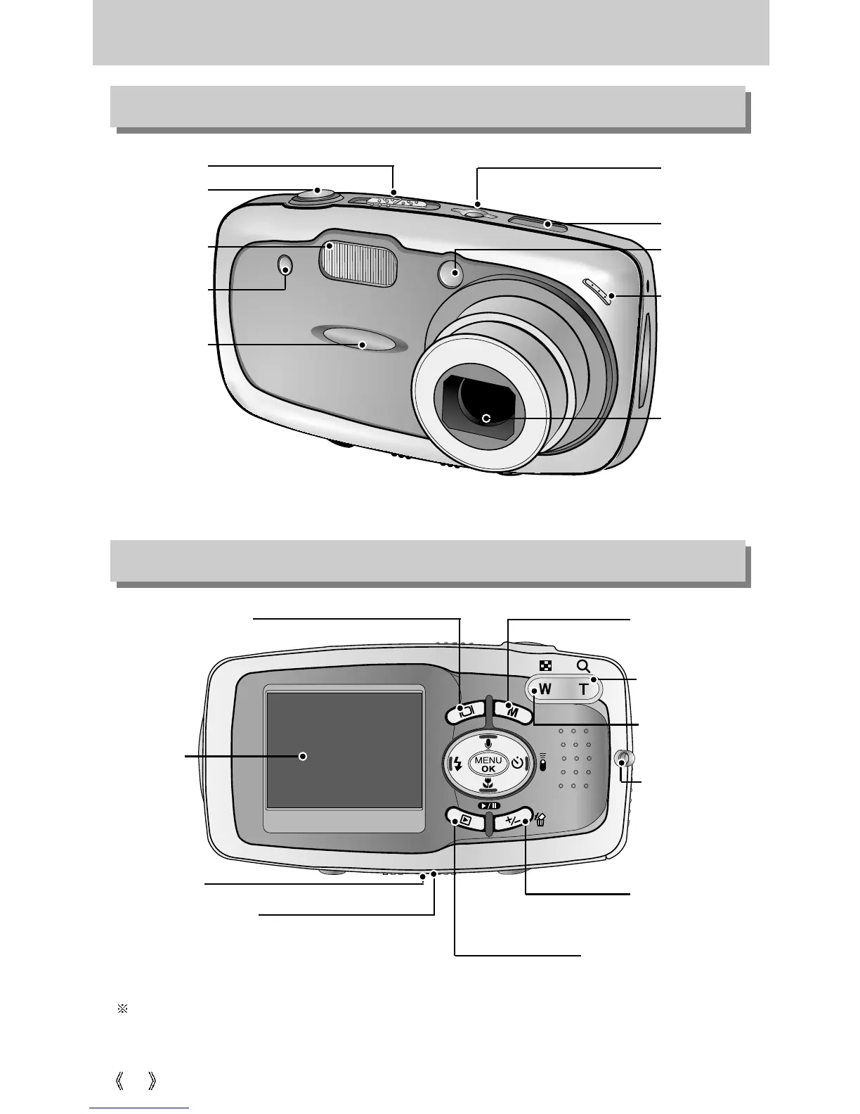 Samsung Digimax u-ca5 - Front and Top Components; Back and Bottom Components