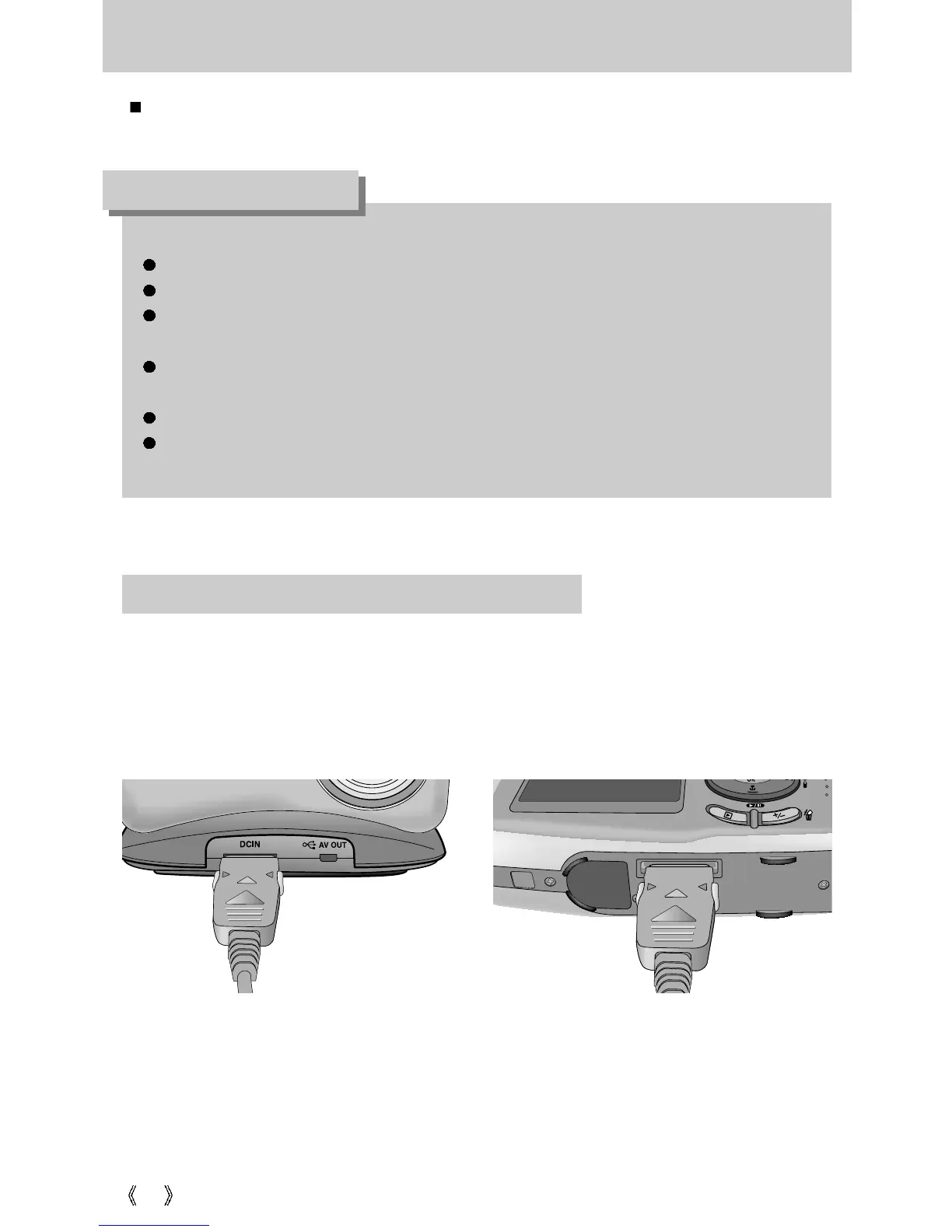 AC adapter) into the connection point (DC IN 4.2V) on the camera.