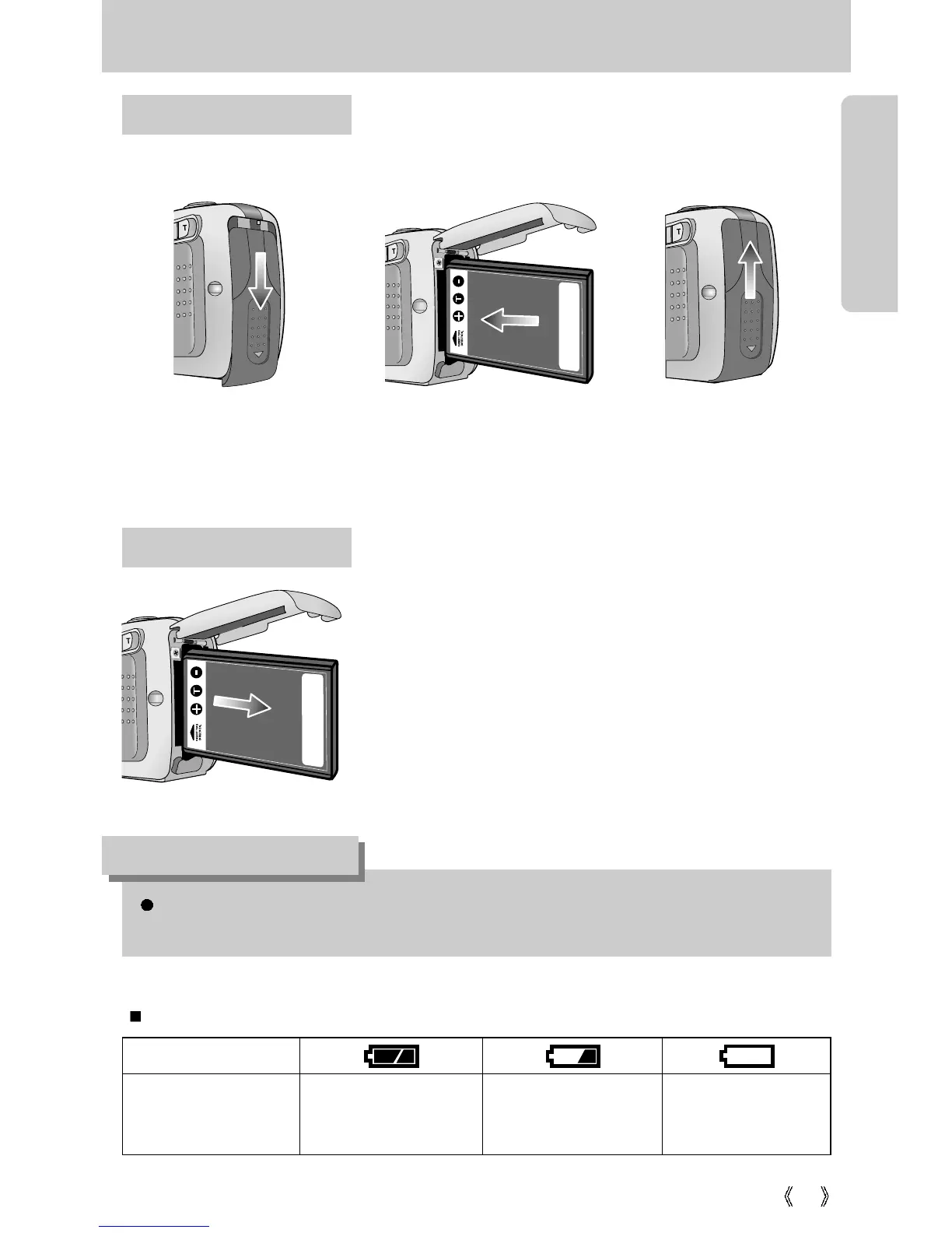 There are 3 indicators for battery condition that are displayed on the LCD monitor.