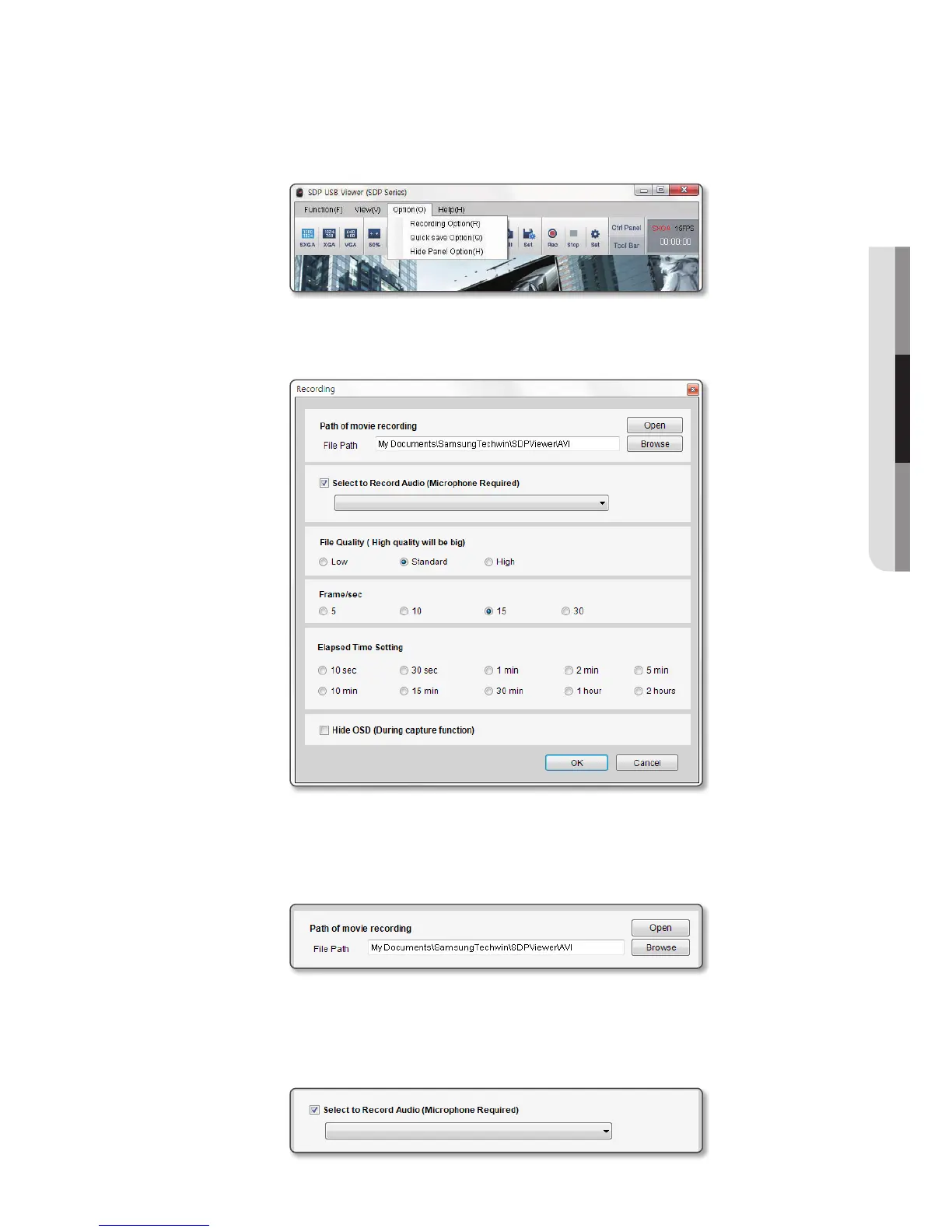 The default path is set to “My Documents\Samsung Techwin\SDPViewer\AVI”.