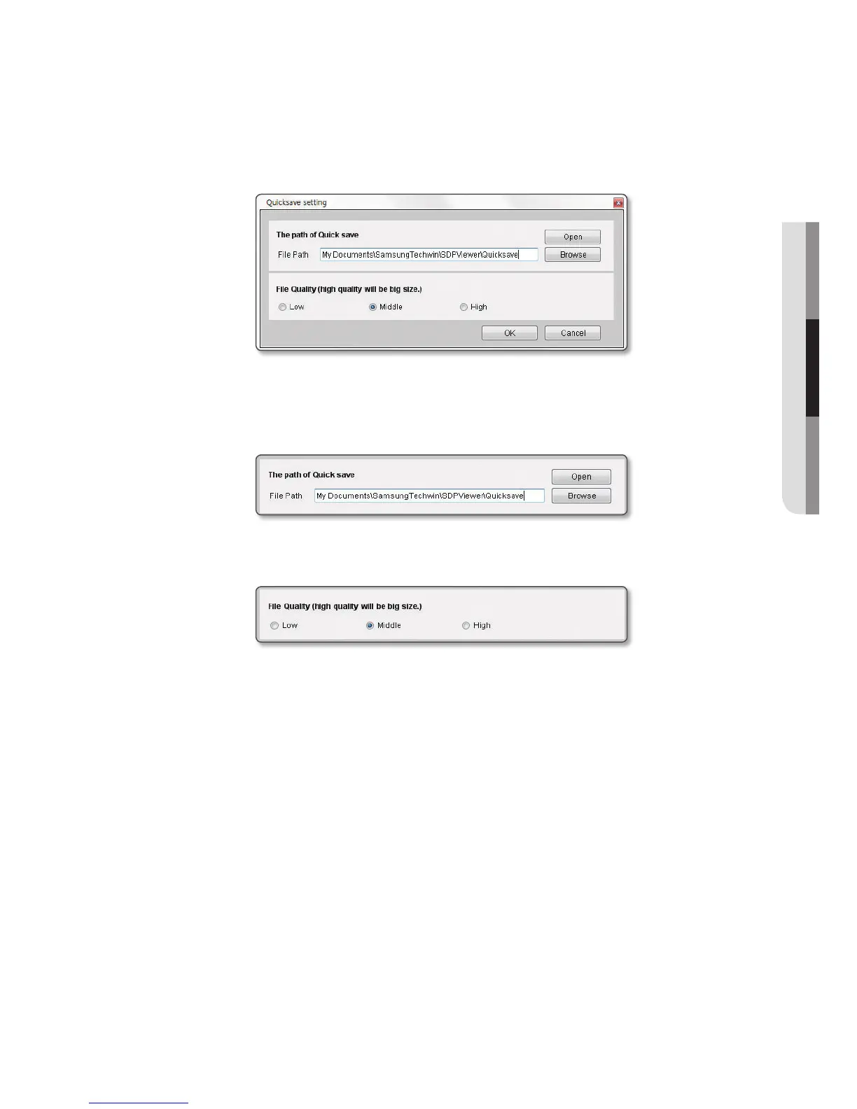 The default path is set to “My Documents\Samsung Techwin\SDPViewer\QuickSave”.