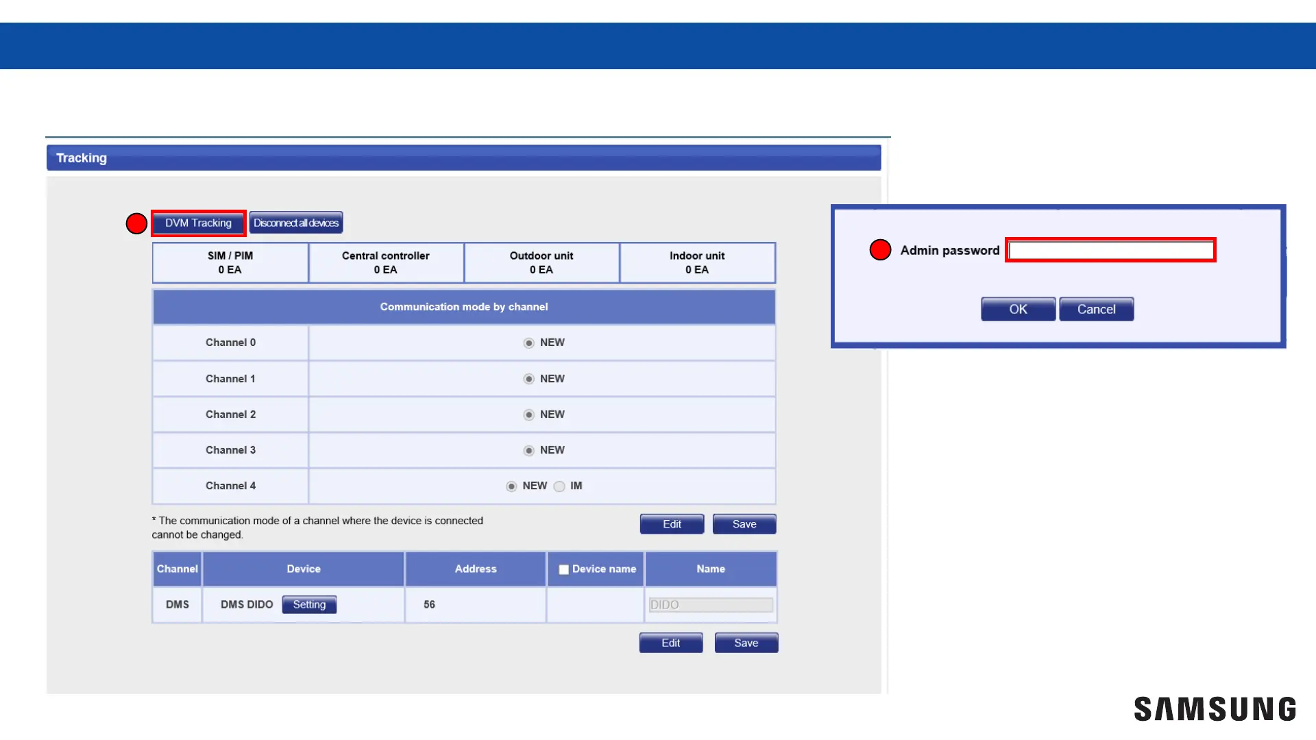 Samsung DMS 2.5 - DMS 2.5 System Tracking: Initiation; Select DVM Tracking Option; Enter Admin Password for Tracking