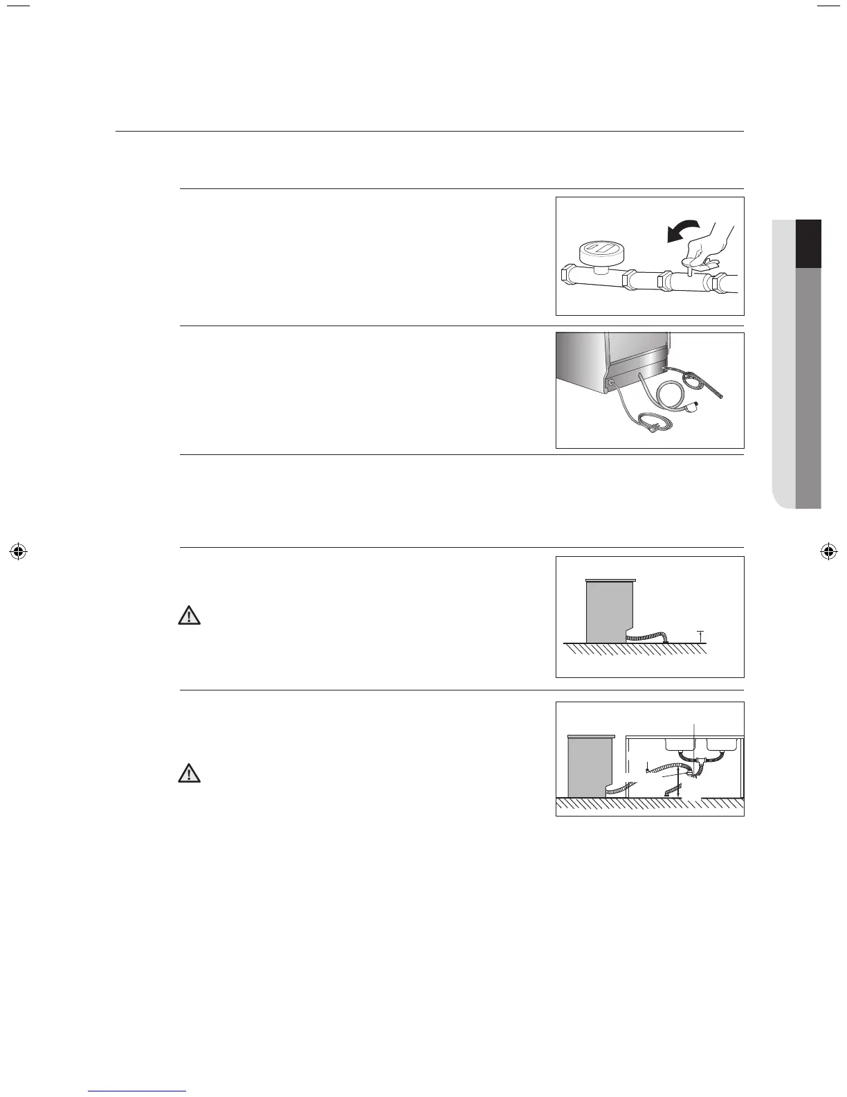 • Connect the appliance to the water mains using a new set of hoses. Do not reuse the old hoses.