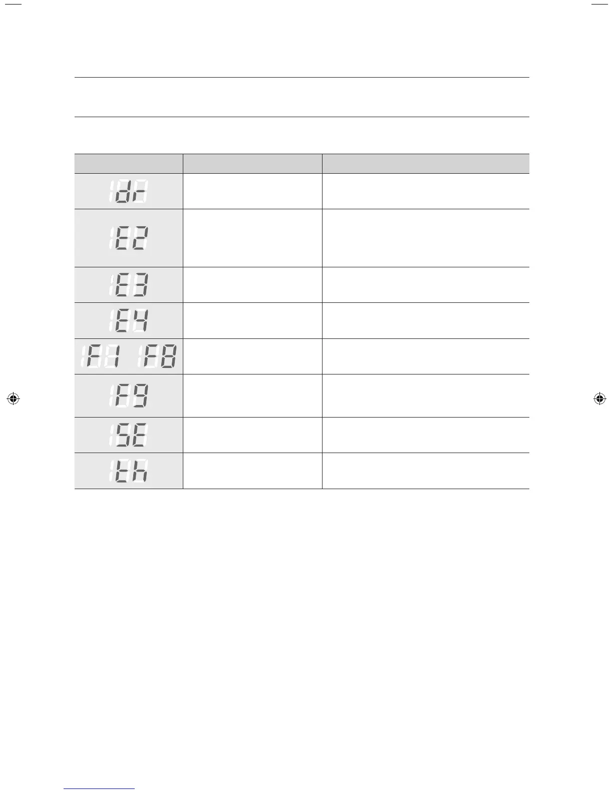 If any of the codes below occur, you should select the Reset option and follow the respective instruction.