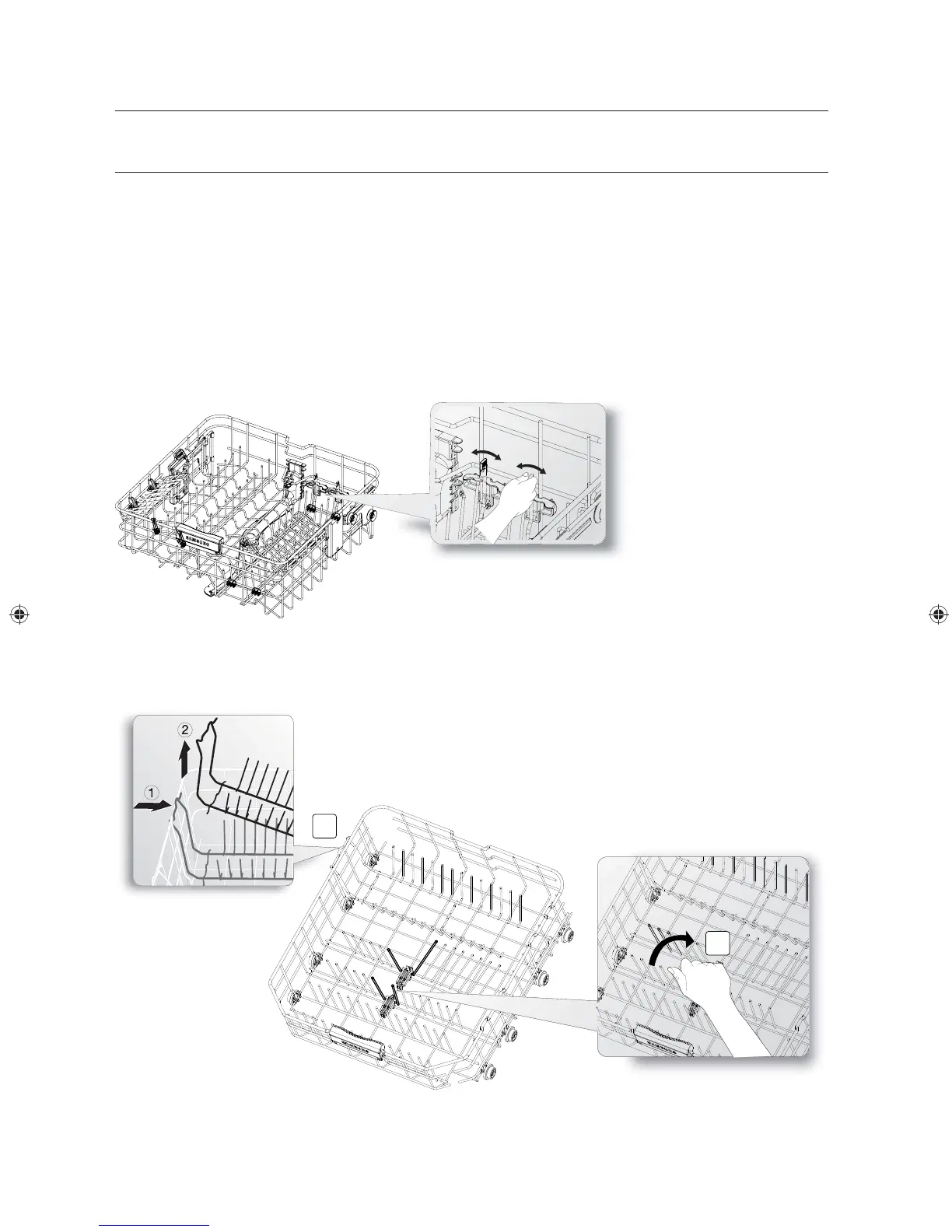 rabattre les tiges du panier inférieur, retirez ce dernier du lave-vaisselle, retournez-le et poussez sur la tige