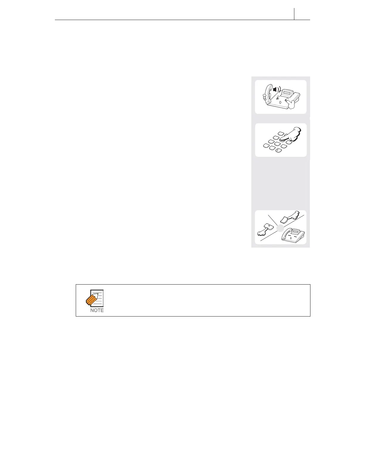 1. Pick up the handset and listen for dial tone or press