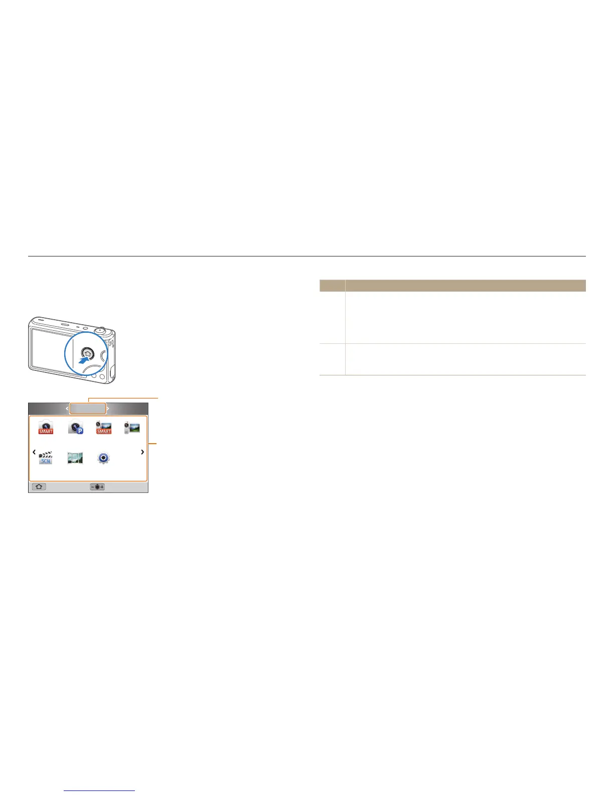 You can select a shooting mode or access the settings menu by selecting the icons on the Home screen.