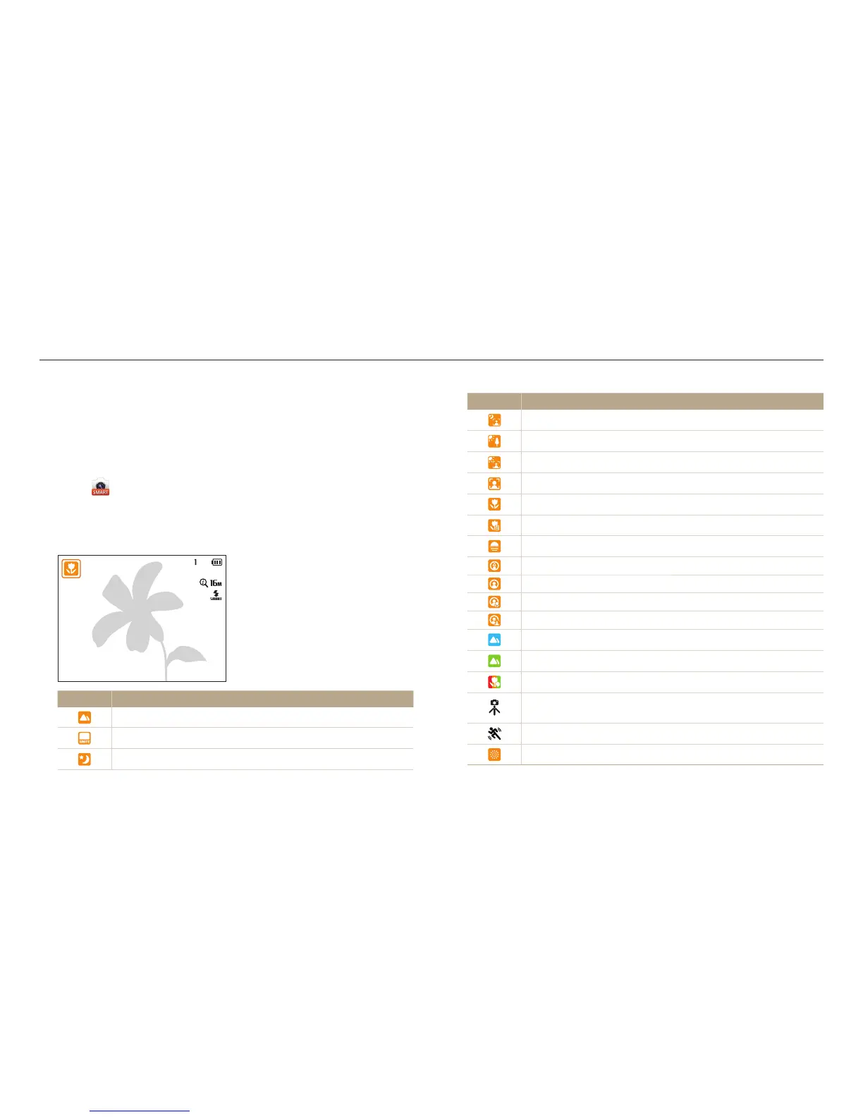 The camera automatically selects a scene. An appropriate scene icon appears