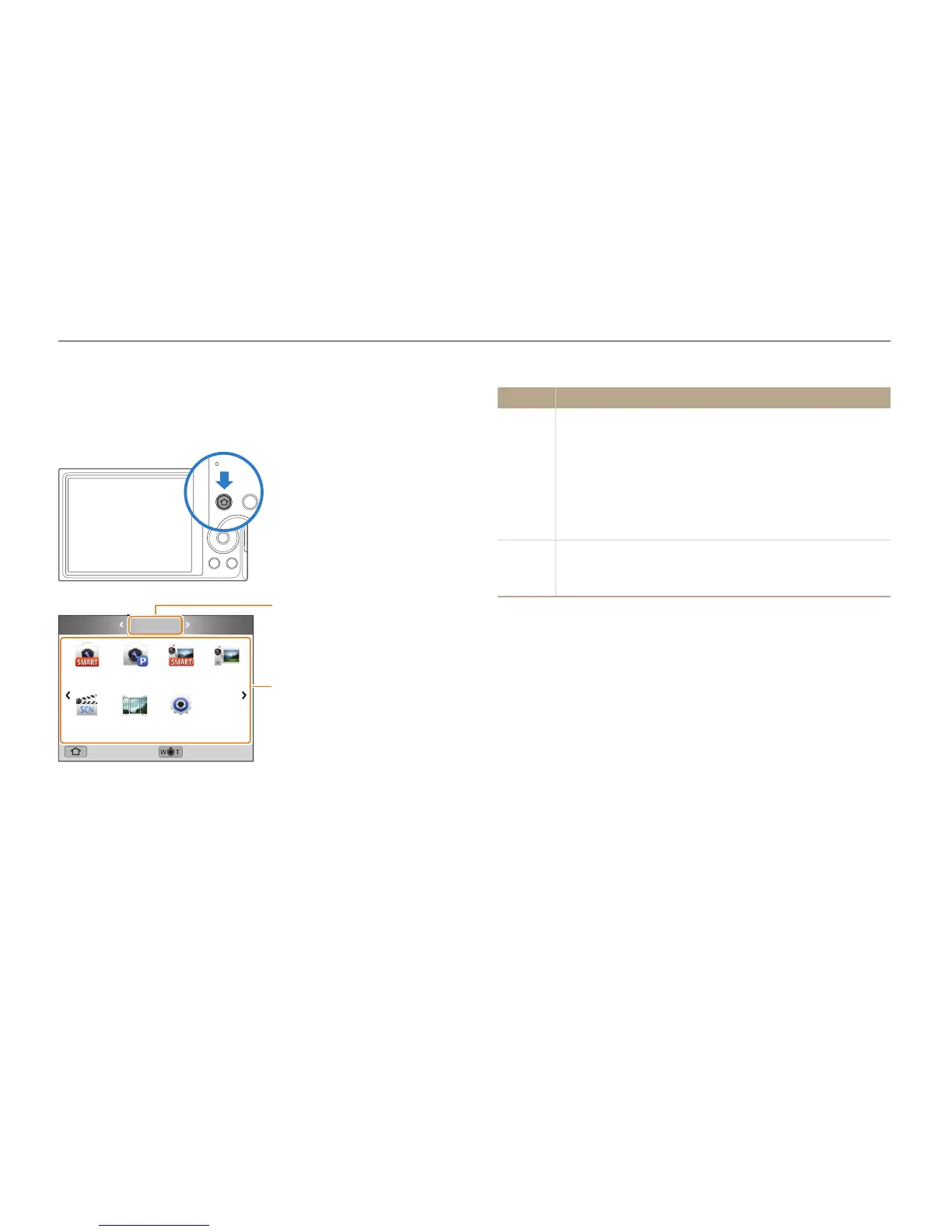 You can select a shooting mode or access the settings menu by selecting the icons on the Home screen.