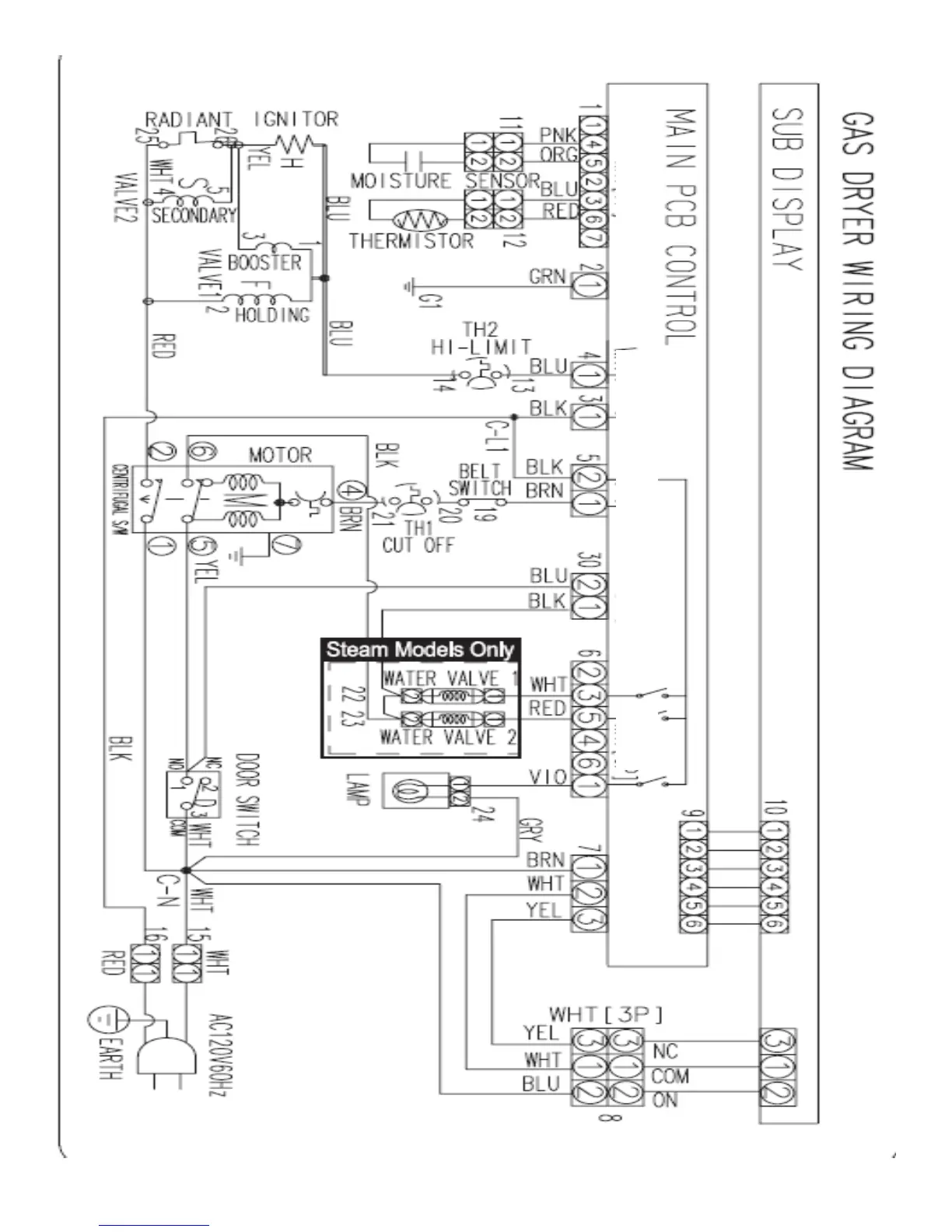 Samsung DV331AEW - Gas Dryer Wiring Diagram; Main PCB Control and Connections; Component Identification in Gas Dryer
