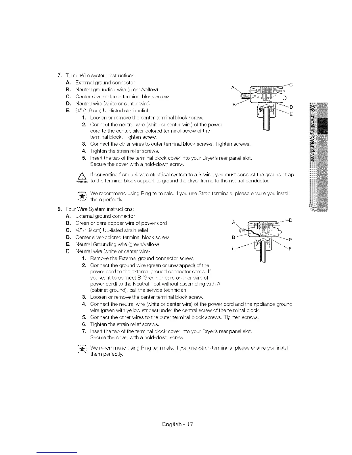 Z_ If converting from a 4-wire electrical system to a 3-wire, you must connect the ground strap