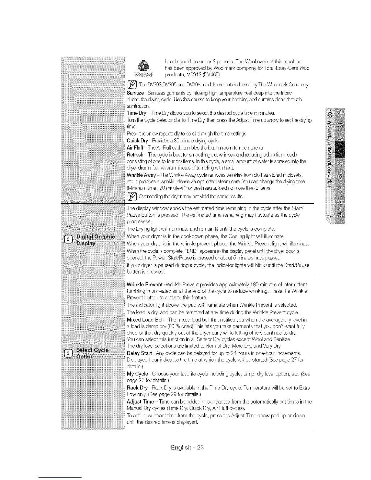 Time Dry -Time Dryallows you to select the desired cycle time in minutes.