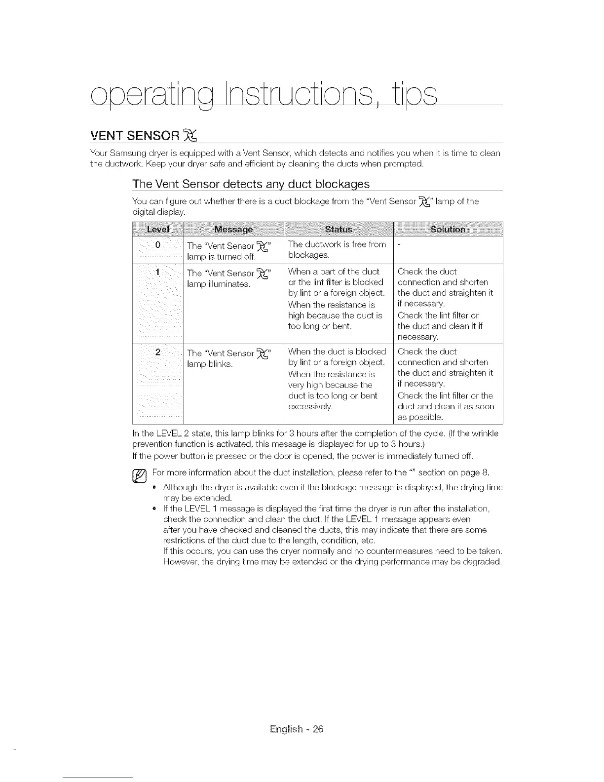 Your Samsung dryer is equipped with a Vent Sensor, which detects and notifies you when it is time to clean