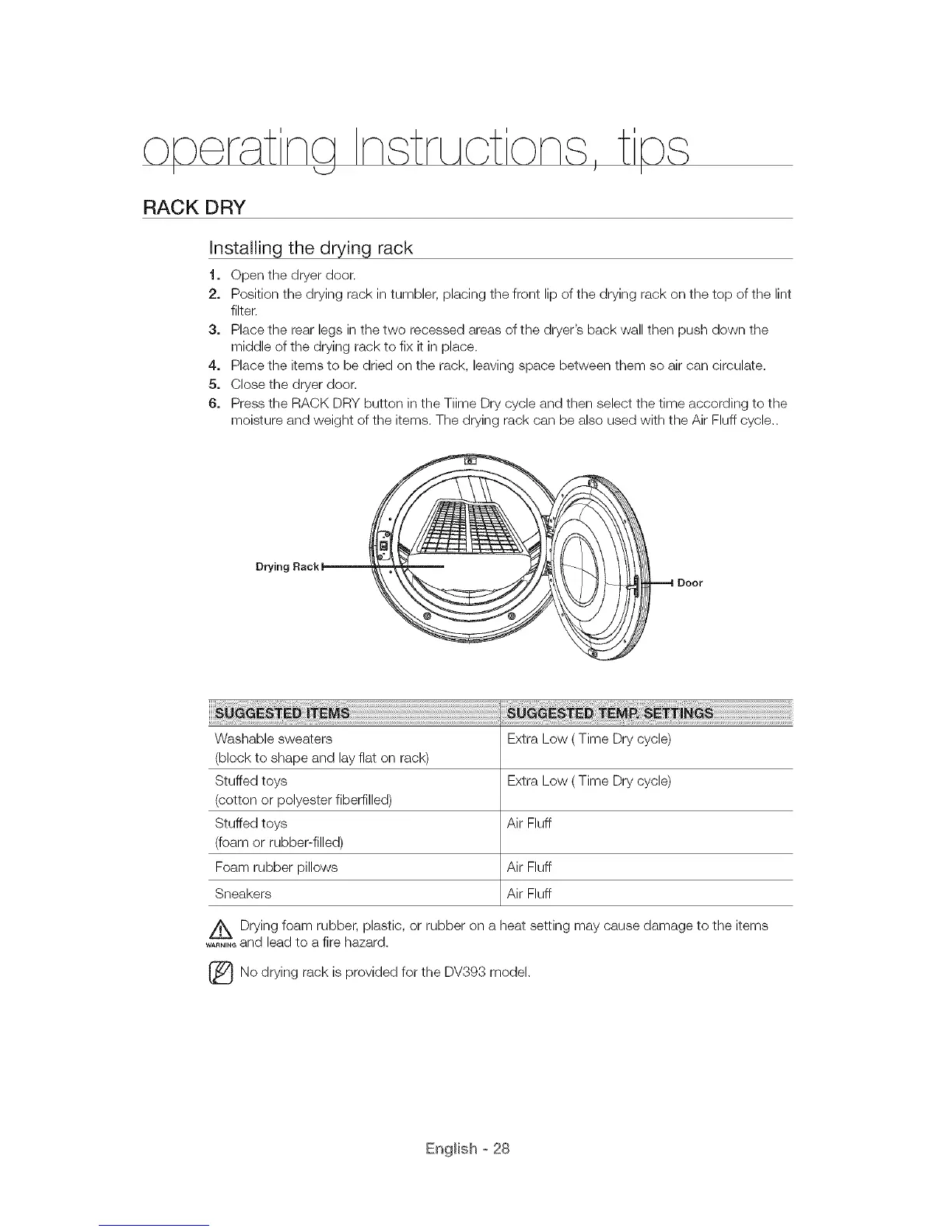 /_ Drying foam rubber, plastic, or rubber on a heat setting may cause damage to the items