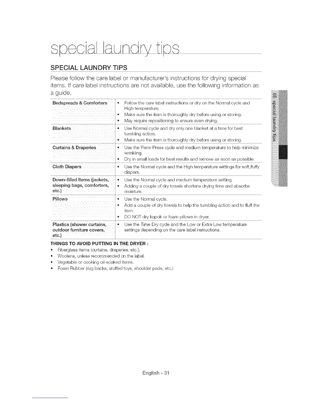 SPECIAL LAUNDRY TIPS
