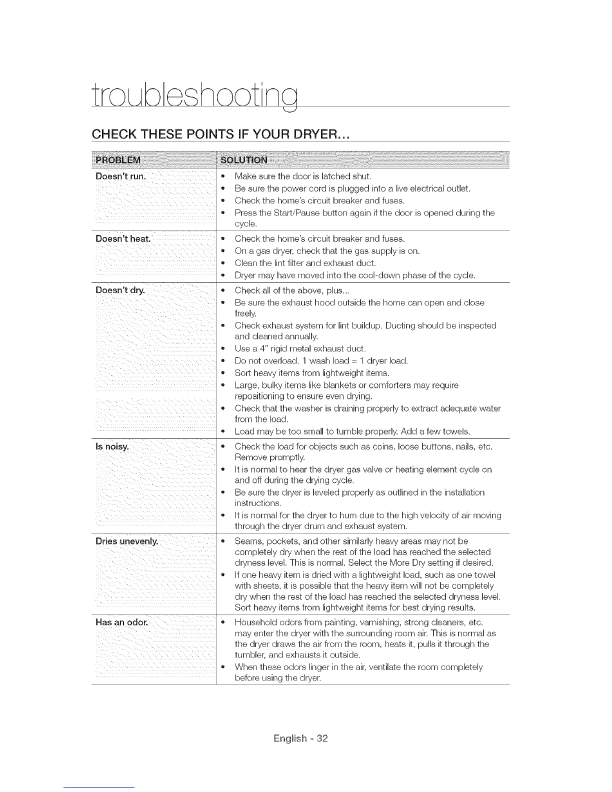 CHECK THESE POINTS IF YOUR DRYER...