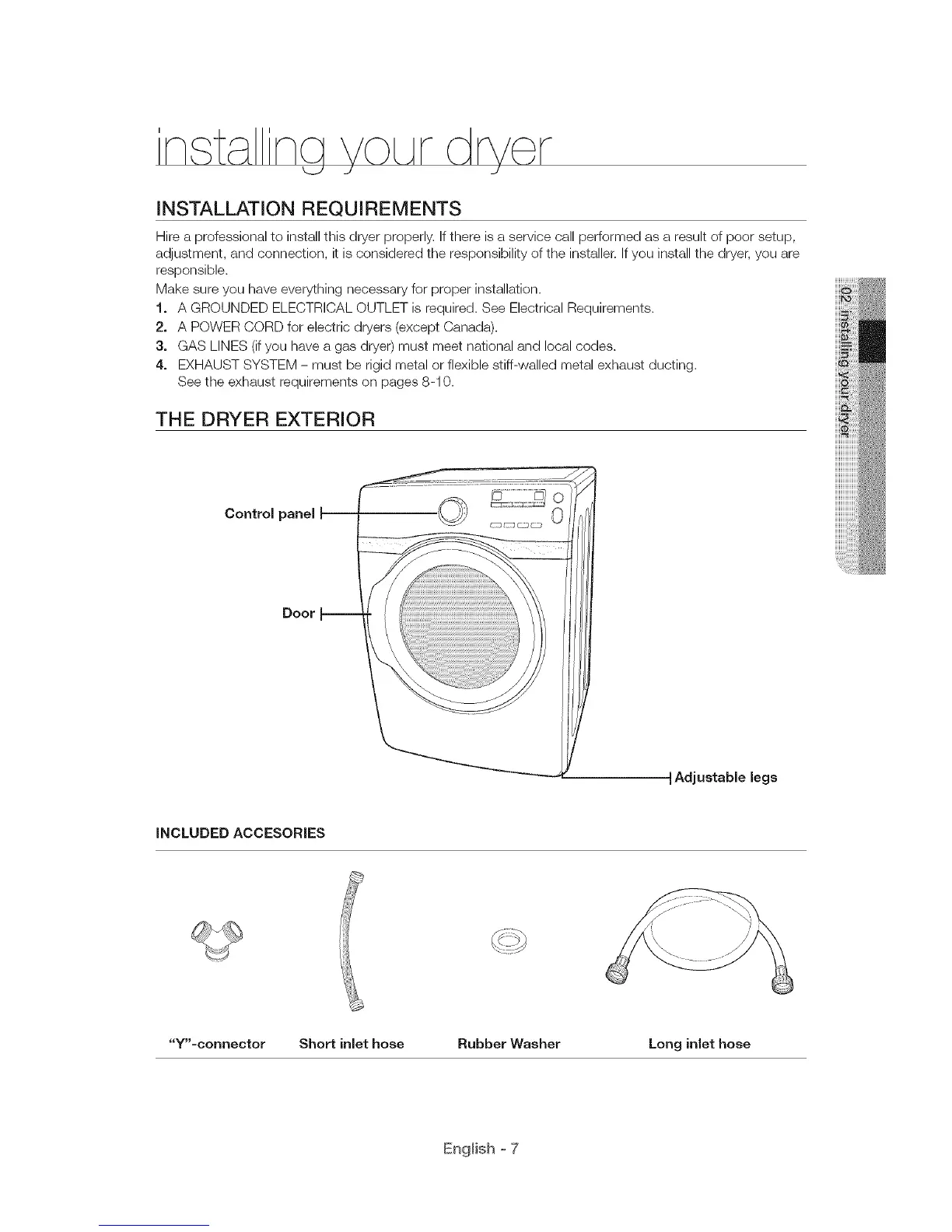 adjustment, and connection, it is considered the responsibility of the installer. If you install the dryer, you are