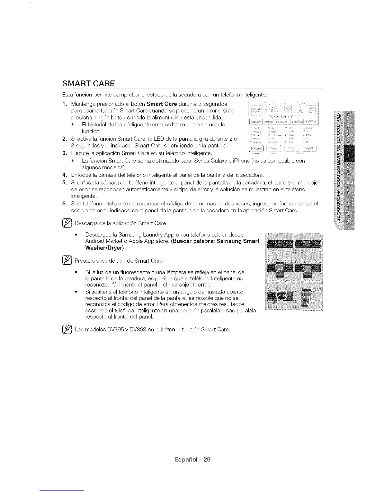 _Los modelos DV395 DV393 admiten la funci6n Smart Care.Y