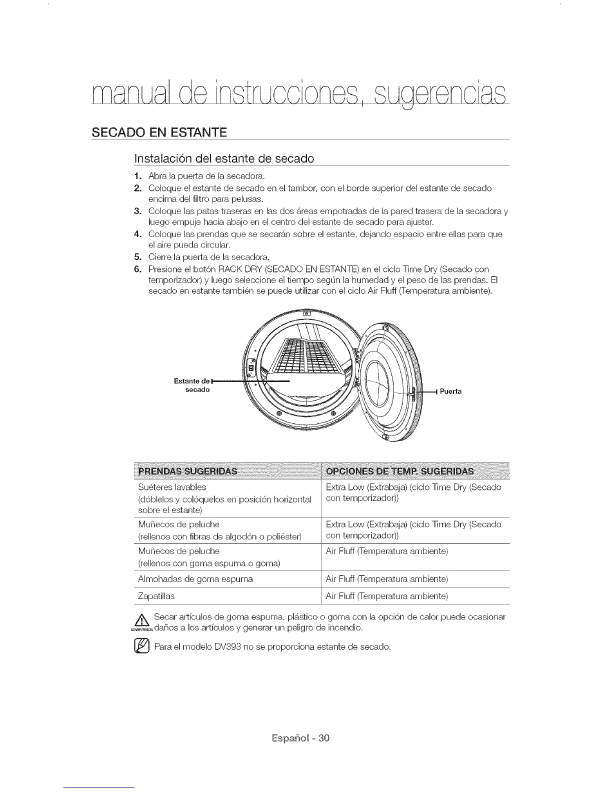 [_ Para el modelo DV393 no se proporciona estante de secado.