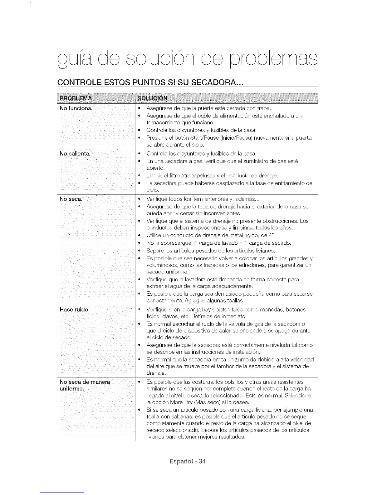 CONTROLE ESTOS PUNTOS Sl SU SECADORA...